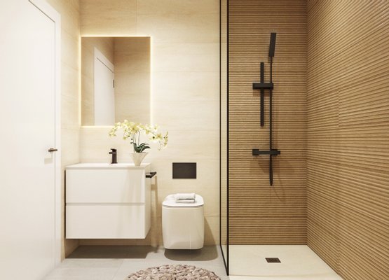 Die Wohnungen sind mit einer vorinstallierten Klimaanlage, elektrischen Küchengeräten (Backofen, Kochfeld, Dunstabzugshaube, Mikrowelle, Kühl- und Gefrierschrank, Geschirrspüler und Waschmaschine), Einbauschränken in allen Schlafzimmern, elektrischen Jalousien, einer Gegensprechanlage und einem privaten Parkplatz auf dem Grundstück ausgestattet.