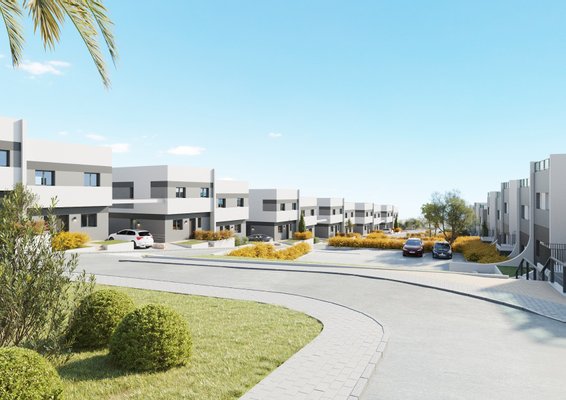 Ein brandneues Projekt, bestehend aus 8 Doppelhaushälften mit 3 Schlafzimmern und 2,5 Bädern und 7 freistehenden Villen mit 4 Schlafzimmern und 2,5 Bädern in Balcon de Finestrat (Alicante), in einer ruhigen, gut vernetzten Gegend in der Nähe von Benidorm, Stränden und dem Golfplatz Puig Campana.