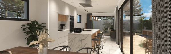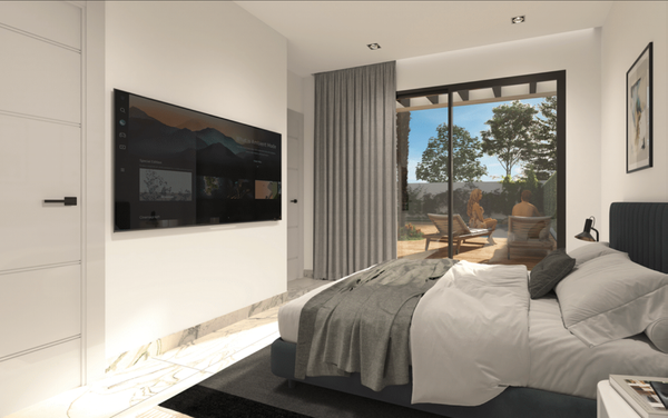 Auf den Grundstücken können Sie das Leben im Freien genießen, mit einem optionalen 6x3 privaten Swimmingpool, einer großzügigen Terrasse und einem Gartenbereich zum Entspannen in der Sonne, und ein weiteres Merkmal der Villa ist die große Sonnenterrasse im ersten Stock mit Blick auf den Pool und den Gartenbereich. Die Villen haben ein schönes, modernes Design und verfügen über große Fenster, die ein Maximum an natürlichem Licht in die Innenräume lassen. Die Inneneinrichtung besteht aus einem geräumigen, offenen Wohn- und Essbereich mit Blick auf den Garten und den Pool, einer voll ausgestatteten, modernen Küche im amerikanischen Stil mit Mittelinsel, einer Gästetoilette und einem beeindruckenden Hauptschlafzimmer mit eigenem Bad und Terrassentür, die direkt auf die Hauptterrasse führt. Die Innentreppe führt Sie in den ersten Stock mit zwei weiteren geräumigen Doppelschlafzimmern und einem separaten Gästebad. Von einem der Schlafzimmer und dem Flur im ersten Stock hat man Zugang zu der großen Sonnenterrasse von 43 m2.