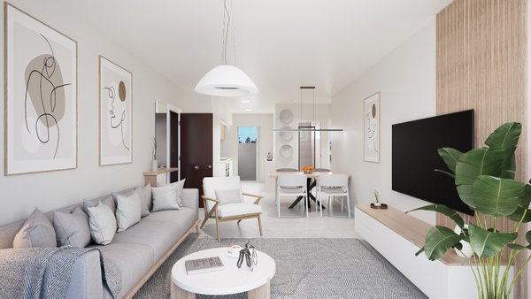 Alle Immobilien verfügen über einen privaten Parkplatz, große Terrassen, um das Leben im Freien zu genießen, schöne Gemeinschaftsgrünflächen und ein Salzwasser-Gemeinschaftsschwimmbad zur Freude der Bewohner.