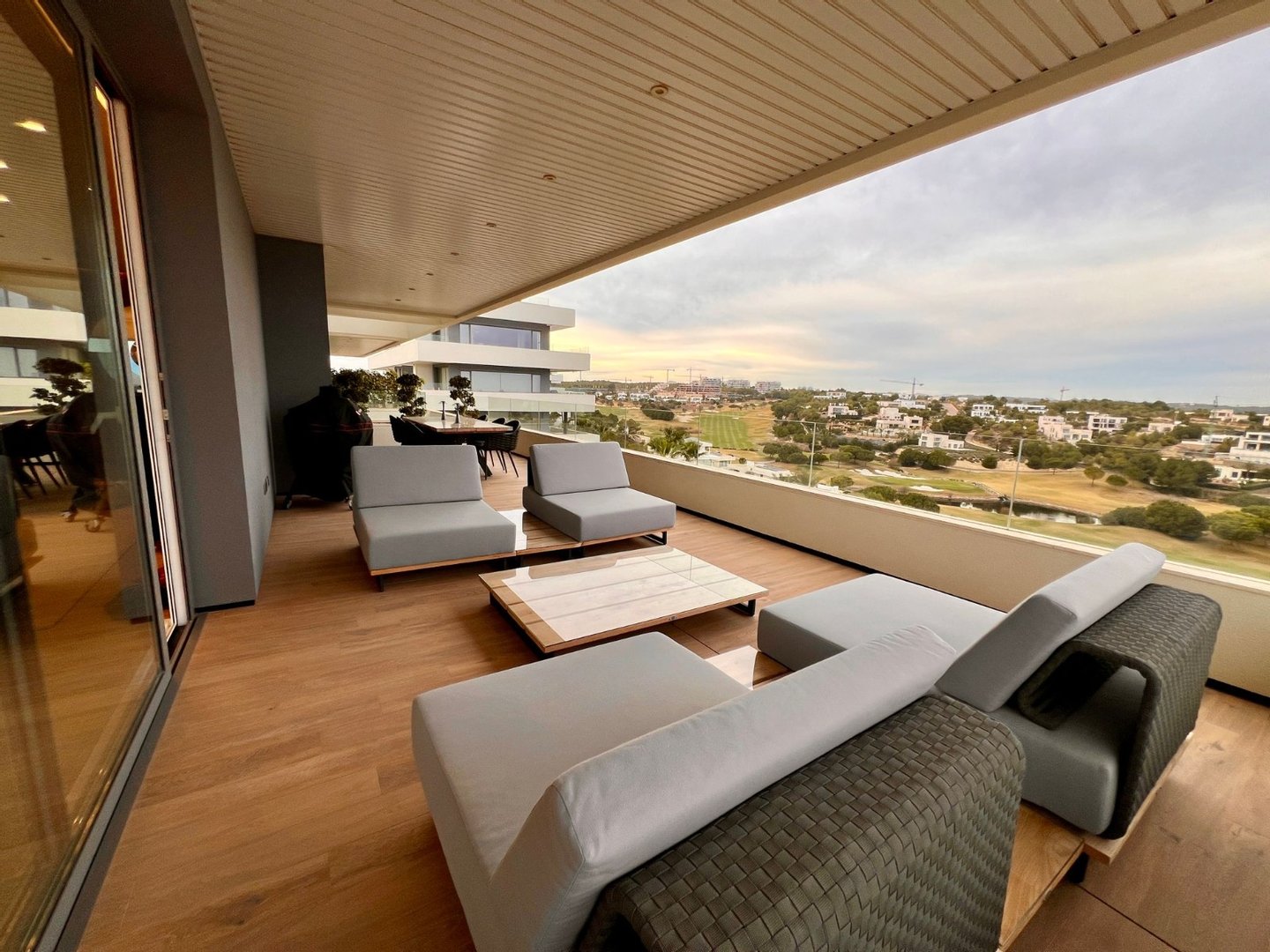 Luxuriöse Sky-Villa mit 3 Schlafzimmern und 2 Bädern im 2. Stock der exklusiven Madroño-Gemeinde im Las Colinas Golf & Country Club. Mit wunderschönem Panoramablick auf den Golfplatz und das Meer. Großzügige Terrassen und durchgehend hochwertige Ausstattung. Nur zwei Einheiten auf jeder Etage dieses einzigartigen Projekts für zusätzliche Privatsphäre. Diese Immobilie wird teilweise möbliert verkauft und verfügt über viele besondere Ausstattungsmerkmale wie Smart-Home-System, Alarmanlage, Fußbodenheizung in den Bädern sowie Miele-Geräte in der Küche und hochwertige Materialien für Ankleidezimmer und Kleiderschränke. Eine Tiefgarage und ein privater Abstellraum sind ebenfalls in dieser Immobilie enthalten.