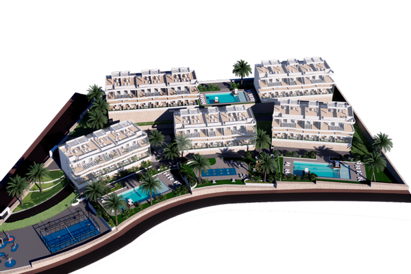 Die 78 Wohnungen verteilen sich auf 5 Wohnblocks mit modernem Design und hervorragender Bauqualität. Die Wohnungen verfügen über großzügige Terrassen und sind mit dem Aufzug in alle Stockwerke jedes Wohnblocks zu erreichen. Es handelt sich um eine private, geschlossene Wohnanlage, die den Bewohnern schöne Grünflächen mit 3 Gemeinschaftspools und Whirlpools, einen Wellnessbereich mit Fitnessstudio, Padel- und Tennisplatz sowie einen Kinderspielplatz mit Springbrunnen bietet.
