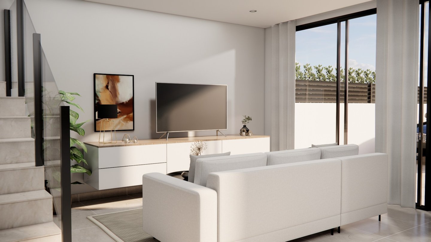 Die funktionale Aufteilung ermöglicht es Ihnen, jeden Quadratmeter optimal zu nutzen. Im Erdgeschoss finden Sie einen geräumigen offenen Wohn- und Essbereich mit großen Fenstern, die sich zur Terrasse hin öffnen, eine voll ausgestattete amerikanische Küche, ein Gäste-WC und ein Doppelschlafzimmer mit eigenem Bad, das Zugang zu einer privaten Terrasse auf der Rückseite des Hauses hat. Im ersten Stock befinden sich zwei weitere Doppelschlafzimmer, ein separates Gästebad und eine große Sonnenterrasse mit der Möglichkeit, diese mit einer 39 m2 großen Dachterrasse zu verbinden, um einen einzigartigen Raum zum Entspannen und Genießen zu schaffen. Die Immobilie verfügt über ein Kellergeschoss von 59 m2, das es Ihnen ermöglicht, zusätzlichen Wohnraum zu schaffen, der Ihren Bedürfnissen und Anforderungen entspricht. Die Doppelhaushälfte des Projekts hat eine größere Fläche von 134 m2, jedes der drei Schlafzimmer hat ein eigenes Bad und es gibt eine größere optionale Dachterrasse von 51 m2.
