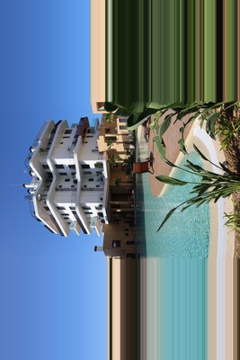 Die Ausrichtung der einzelnen Gebäude wurde sorgfältig geplant, um die Temperatur, die Luftqualität, die Beleuchtung und den Lärmpegel zu regulieren, wobei das natürliche Gefälle und die Verbindung zur Küste optimal genutzt wurden, so dass der Meerblick von allen Gebäudeteilen aus optimiert werden konnte. Um eine vollständig in die Umgebung integrierte Landschaft zu schaffen, wurden außerdem nachhaltige Baumaterialien verwendet (Holz, verdichtete Erde, natürliches Grasland) und Wasserkanäle angelegt, die den Komplex durchziehen. Außerdem wurden bestehende Lebensräume oder Arten von ökologischem Wert durch eine sorgfältige Auswahl einheimischer, an die Umgebung angepasster Pflanzen aufgewertet, darunter Palmen, Kiefern, Granatäpfel, Sträucher, Gräser und Wildblumen.