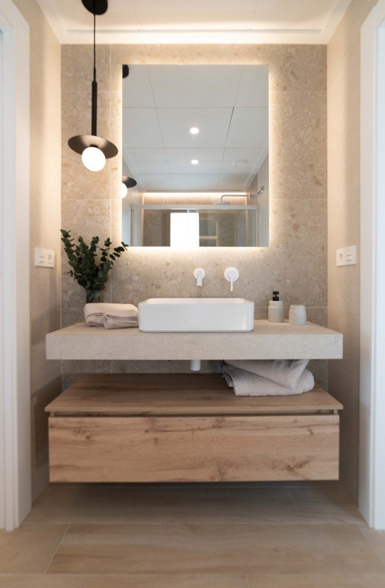 Das Projekt ist wunderschön mit Villen in einem zeitgenössischen Stil mit besonderen Steinmauern und einzigartigen Pergolen ausgestattet. Die Villen erstrecken sich über zwei Ebenen mit einer Dachterrasse. Die Innenaufteilung besteht aus einem Eingangsbereich, der zum hellen und geräumigen offenen Wohn- und Essbereich führt, mit mehreren Fenstern im gesamten Wohnbereich, die für viel natürliches Licht sorgen und sich zur Terrasse hin öffnen. Im Hauptwohnbereich befindet sich eine voll ausgestattete moderne Küche im amerikanischen Stil mit Mittelinsel und einer Zugangstür zur Terrasse. Im Erdgeschoss befinden sich außerdem ein Schlafzimmer mit Doppelbett und ein Badezimmer, das durch eine Doppeltür vom Schlafzimmer oder vom Flur aus zugänglich ist. Die Innentreppe führt Sie in die erste Etage, wo sich zwei weitere Doppelschlafzimmer befinden (eines davon mit Zugang zur vorderen Sonnenterrasse) und ein weiteres Badezimmer, das von jedem Schlafzimmer aus durch eine Doppeltür zu erreichen ist. Die freistehenden Villen des Projekts haben einen etwas anderen Grundriss, alle Schlafzimmer haben ein eigenes Bad, es gibt eine separate Gästetoilette im Erdgeschoss, und es besteht die Möglichkeit, ein Untergeschoss zu bauen, um zusätzlichen Wohnraum zu schaffen.