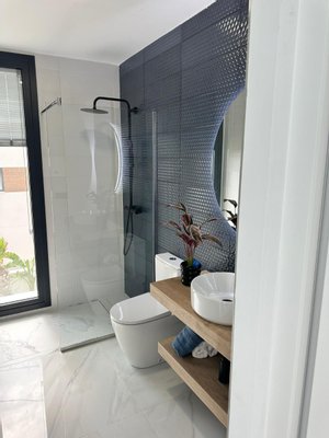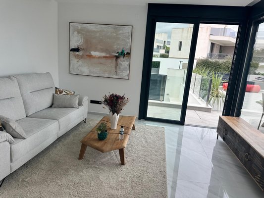 Die Immobilie verfügt über eine vorinstallierte Klimaanlage, Fußbodenheizung in den Bädern, elektrische Küchengeräte (Backofen, Cerankochfeld, Dunstabzugshaube, Kühl-Gefrierkombination, Geschirrspüler und Waschmaschine), Einbauschränke in allen Schlafzimmern, LED-Beleuchtung innen und außen, elektrische Rollläden, Video-Gegensprechanlage, einen Garten mit weißem Kies und Kunstrasen, einen privaten Swimmingpool mit Solardusche und eine private Garage mit motorisiertem Eingangstor.