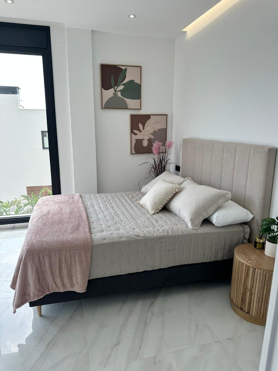 Die Villen erstrecken sich über zwei Ebenen mit einem zusätzlichen Kellergeschoss. Die Innenaufteilung besteht aus einem Eingangsflur, der zum hellen und geräumigen offenen Wohn- und Essbereich mit großen Fenstern im gesamten Wohnbereich führt und Zugang zur Terrasse und zum Garten bietet. Im Hauptwohnbereich befindet sich eine voll ausgestattete Küche im amerikanischen Stil mit einer Mittelinsel. Im Erdgeschoss befinden sich außerdem ein Schlafzimmer mit Doppelbett und Ankleidebereich sowie ein separates Gästebad. Die Innentreppe führt Sie in den ersten Stock mit zwei großen Doppelschlafzimmern, beide mit eigenem Bad und Zugang zur Terrasse mit Pergola. Über die Innentreppe gelangt man auch in das 94 m2 große Untergeschoss, wo sich ein großes Doppelschlafzimmer mit eigenem Bad und Ankleidebereich befindet. Der Bereich ist durch den schönen englischen Innenhof mit natürlichem Licht erfüllt und eignet sich perfekt für eine größere Familie oder wenn Gäste zu Besuch kommen. Im Untergeschoss befindet sich auch eine Waschküche und Sie haben Zugang zu einer privaten Garage.