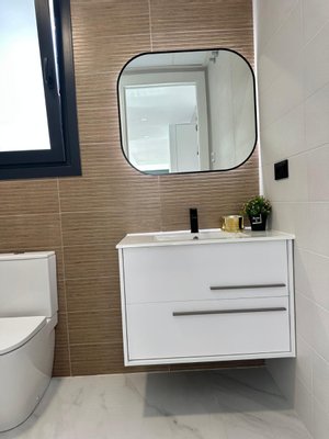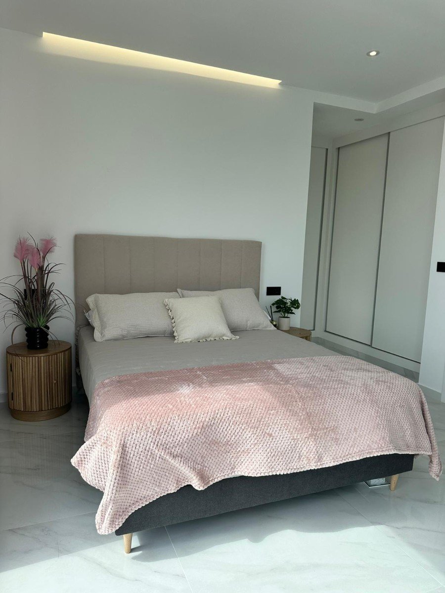 Die Immobilie verfügt über eine vorinstallierte Klimaanlage, Fußbodenheizung in den Bädern, elektrische Küchengeräte (Backofen, Cerankochfeld, Dunstabzugshaube, Kühl-Gefrierkombination, Geschirrspüler und Waschmaschine), Einbauschränke in allen Schlafzimmern, LED-Beleuchtung innen und außen, elektrische Rollläden, Video-Gegensprechanlage, einen Garten mit weißem Kies und Kunstrasen, einen privaten Swimmingpool mit Solardusche und eine private Garage mit motorisiertem Eingangstor.