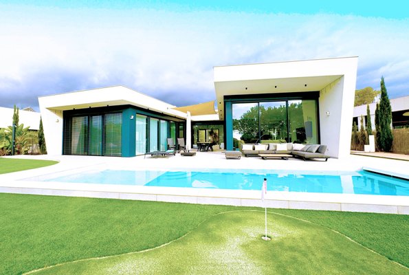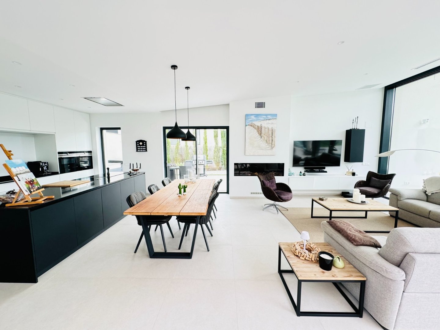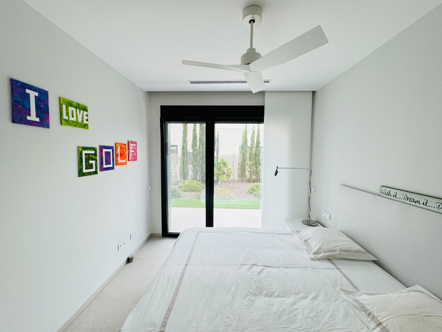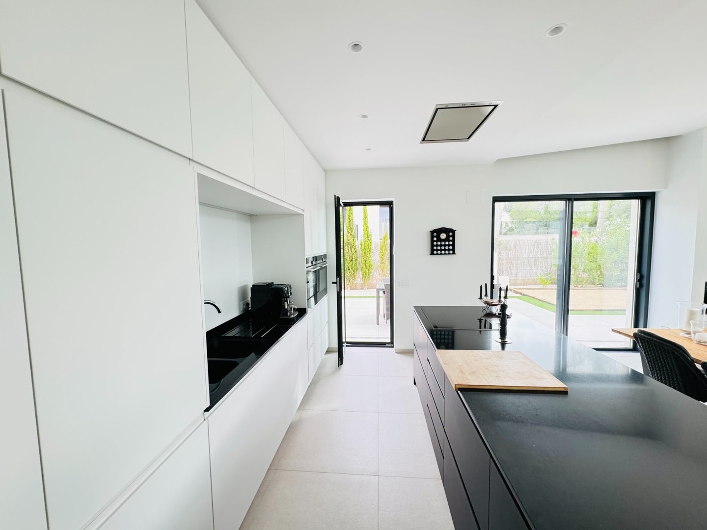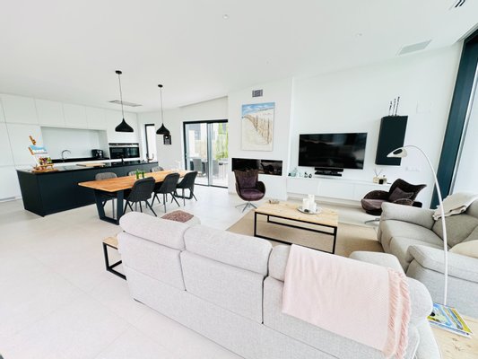 Moderne freistehende Villa mit 3 Schlafzimmern und 3 Bädern in erster Linie zum Golfplatz in der Anlage Mimosa Las Colinas. Das Clubhaus und alle verfügbaren Dienstleistungen sind zu Fuß erreichbar. Offene Küche und geräumiges Wohnzimmer mit