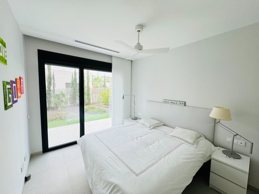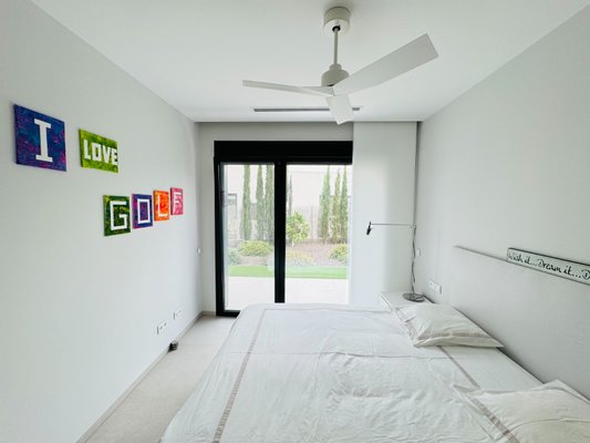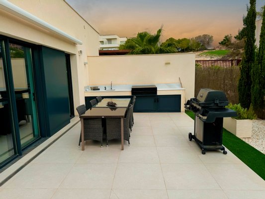 Moderne freistehende Villa mit 3 Schlafzimmern und 3 Bädern in erster Linie zum Golfplatz in der Anlage Mimosa Las Colinas. Das Clubhaus und alle verfügbaren Dienstleistungen sind zu Fuß erreichbar. Offene Küche und geräumiges Wohnzimmer mit herrlicher Aussicht auf den umliegenden mediterranen Wald und natürlich den preisgekrönten Golfplatz vor dem Anwesen. Stilvolles Design mit hohen Decken und hochwertiger Tischlerei in der gesamten Villa. 3 Schlafzimmer mit eigenem Bad und Gästetoilette. Küche im amerikanischen Stil mit allen Elektrogeräten sowie hübsch dekoriertes Wohnzimmer mit Kamin und Designermöbeln. Landschaftsgarten mit großer Terrasse und freier Aussicht auf den Golfplatz und den Wald. Privater überdachter Parkplatz für zwei Autos mit elektrischem Tor. Außengrillplatz und Petanca-Spielplatz sind ebenso im Preis inbegriffen wie alle Möbel.
