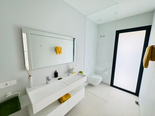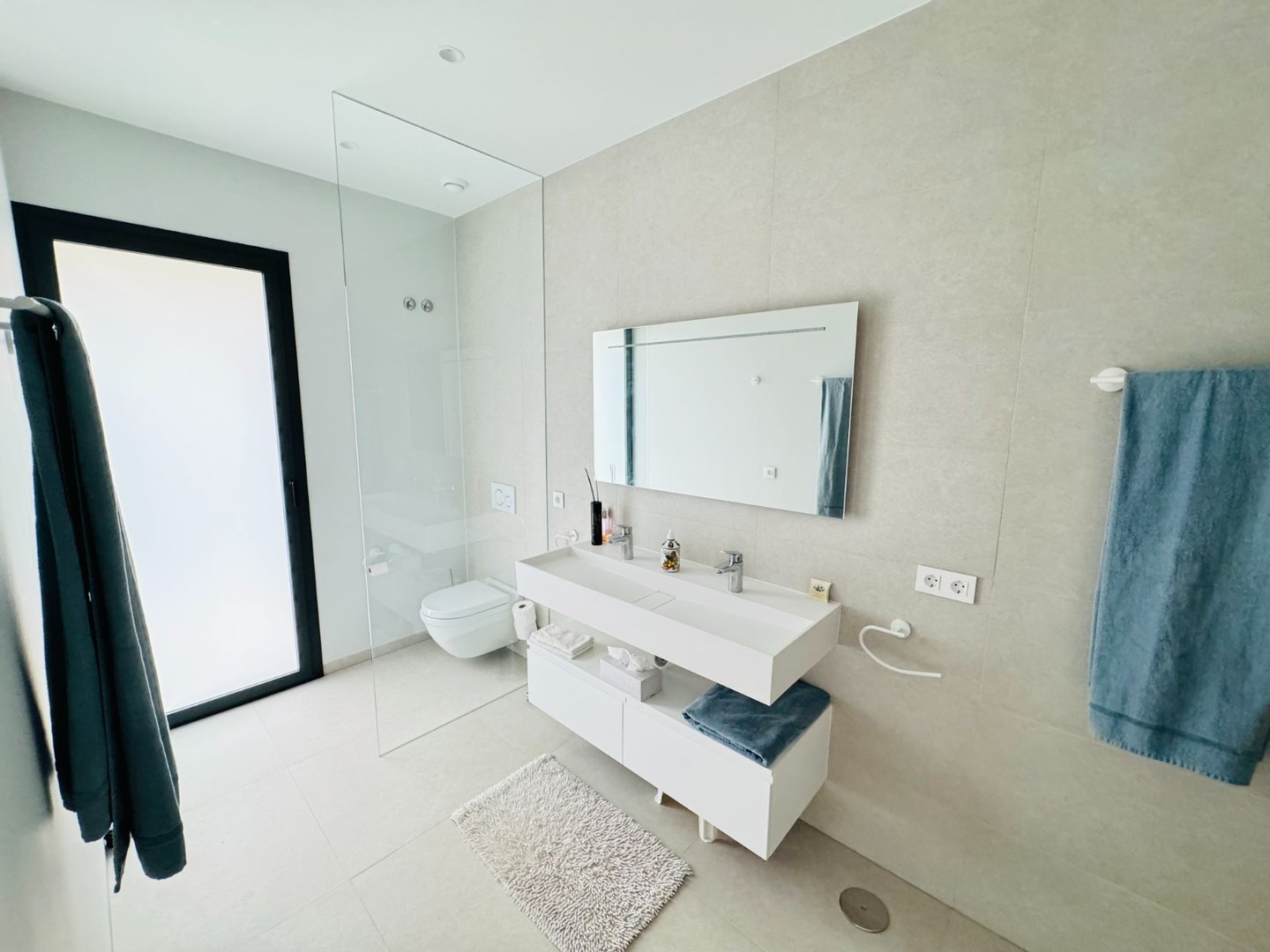 Zu den besonderen Ausstattungsmerkmalen gehören eine Fußbodenheizung in der gesamten Villa sowie 16 Sonnenkollektoren mit einem 10KW-Batteriesystem, eine Wärmepumpe und eine elektrische Abdeckung für den Pool sowie ein komplettes Innen-/Außenalarmsystem.