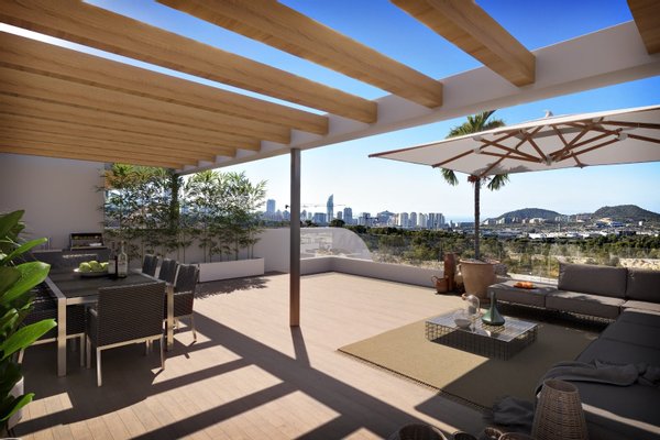 The penthouses stand out for their private solarium, accessed via a private staircase from the main terrace. From here, you can enjoy breathtaking views of the sea and the iconic Benidorm skyline. Each apartment comes with one parking space and one storage room in the underground car park, included in the price and the complex comes with a parking area for bicycles.