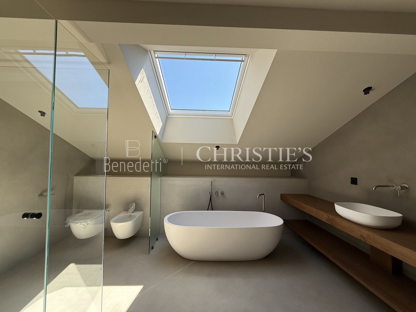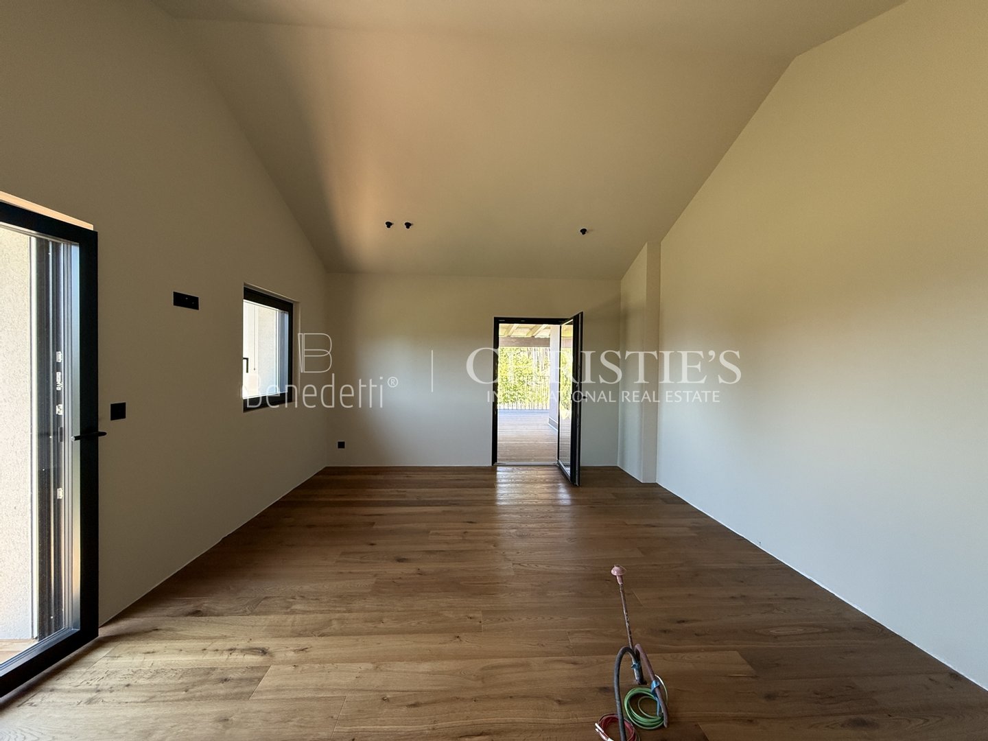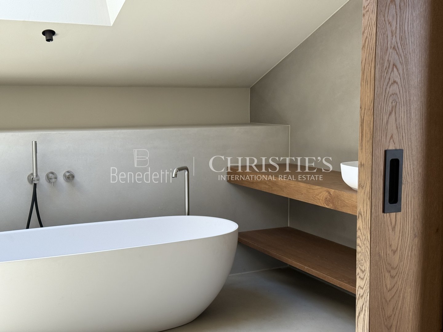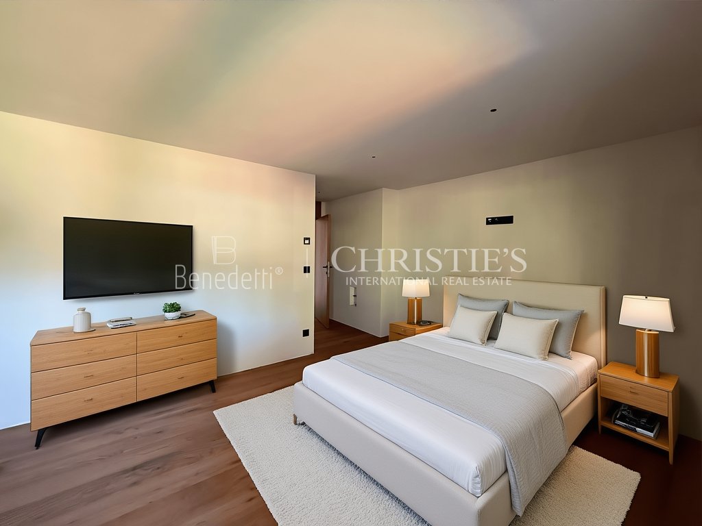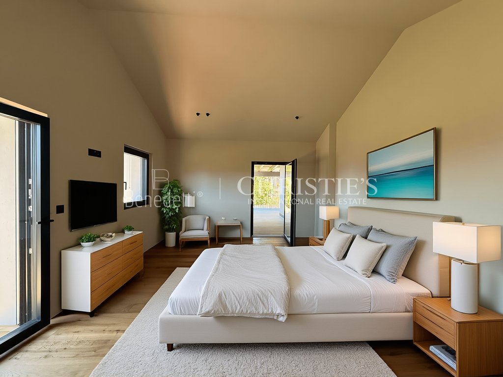 Eine Treppe führt in den 2. Stock, wo drei komfortable Schlafzimmer und zwei Bäder untergebracht sind. Von hier aus gelangt man auf eine große Terrasse und einen weiteren Balkon, die traumhafte Ausblicke bieten.
