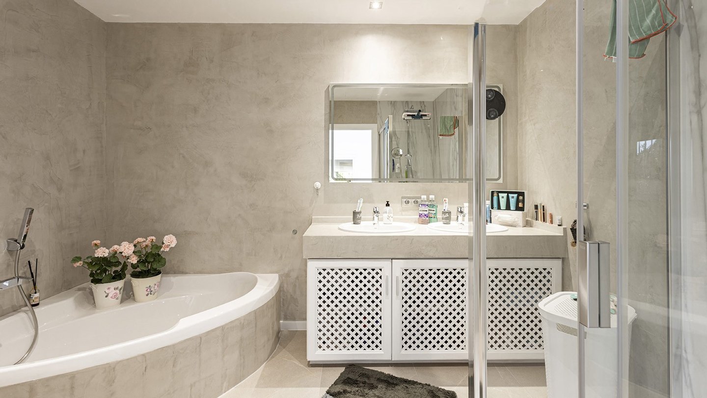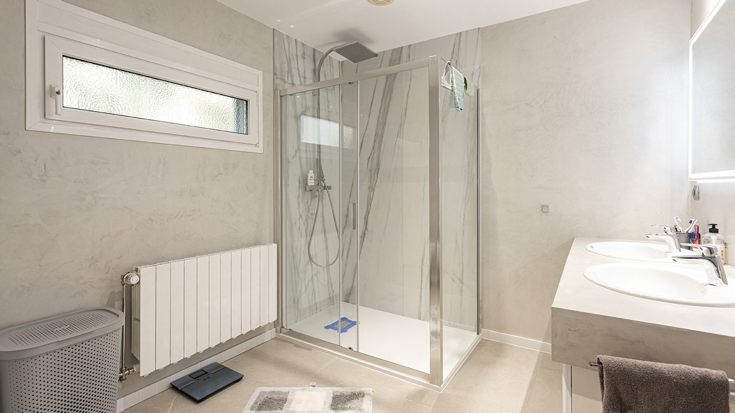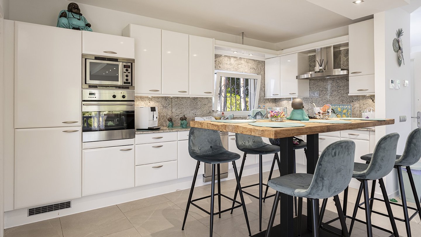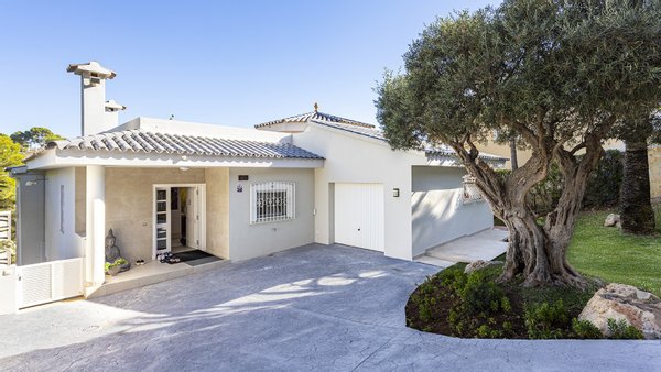 Diese im Jahr 2022 komplett renovierte Villa vereint luxuriösen Komfort und stilvolles Wohnen auf drei Ebenen. Umgeben von einem mediterran bewachsenen Grundstück und eingebettet in eine bevorzugte Wohngegend genießen Sie hier nicht nur Ruhe, sondern auch Privatsphäre. Auf der Eingangsebene empfängt Sie ein lichtdurchfluteter Wohn- und Essbereich mit direktem Zugang zur großzügigen Terrasse mit herrlichem Meerblick. Die offene Küche, ein Gästezimmer, das ideal als Büro genutzt werden kann, sowie ein praktischer Hauswirtschaftsraum und ein Gäste-WC runden diese Etage perfekt ab. Eine Garage bietet zusätzlichen Komfort. Im Untergeschoss erwarten Sie ein elegantes Hauptschlafzimmer mit Bad en suite, zwei weitere Schlafzimmer, ein zusätzliches Bad sowie eine gemütliche Terrasse mit Blick auf den bezaubernden Garten. Ein absolutes Highlight ist die Poolebene: Hier erwarten Sie ein beheizbarer Pool, ein BBQ-Bereich für gesellige Grillabende und ein SPA mit separater Sauna, Dusche und WC - der ideale Rückzugsort zum Entspannen und Genießen. Diese Villa ist ein wahres Schmuckstück und bietet höchsten Wohnkomfort in traumhafter Lage.