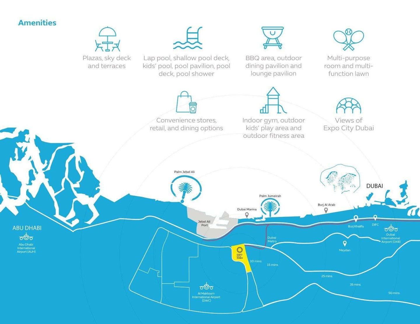 In Ihrer Freizeit können Sie die vielfältigen Angebote in der Nähe genießen. Egal ob Einkaufszentren, Restaurants oder kulturelle Einrichtungen - hier ist für jeden etwas dabei. Die Nähe zur Expo City Dubai sorgt dafür, dass Sie auch die pulsierende Atmosphäre der Stadt leicht erreichen können.