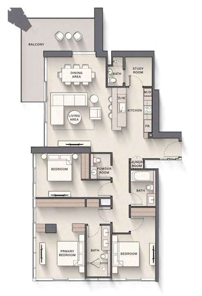 Treten Sie ein in Ihr neues Zuhause und erleben Sie pure Entspannung in den drei paradiesischen Schlafzimmern. Von der Decke bis zum Boden erstrecken sich die großzügigen, bodentiefen Fenster über die ganze Front, die Ihnen einen atemberaubenden