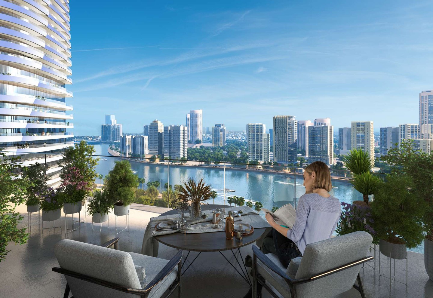 Die Immobilie befindet sich in Business Bay, Dubai und bietet einen atemberaubenden Blick auf den Burj Khalifa sowie die Skyline von Downtown Dubai. Die Lage direkt am Wasser verleiht ihr eine ganz besondere Atmosphäre und macht sie zu einem