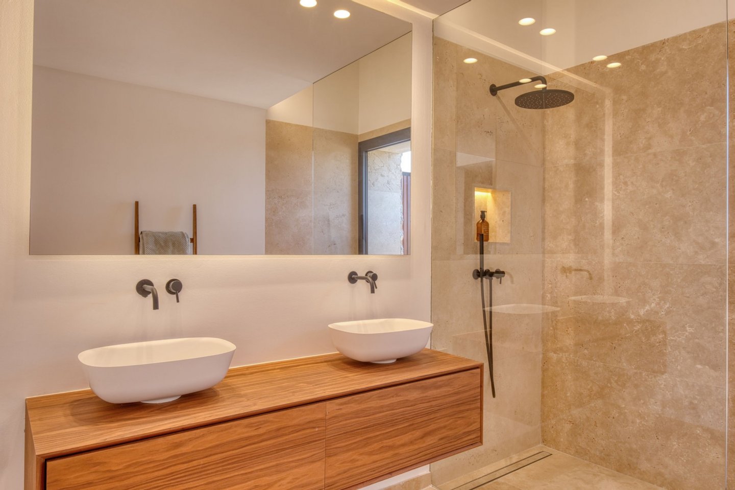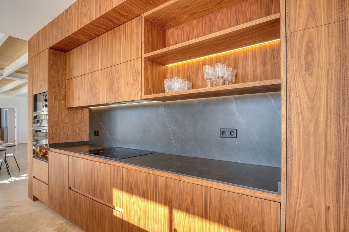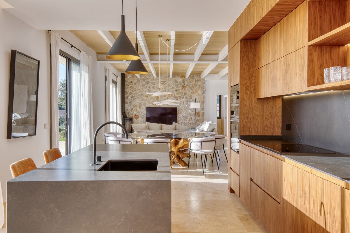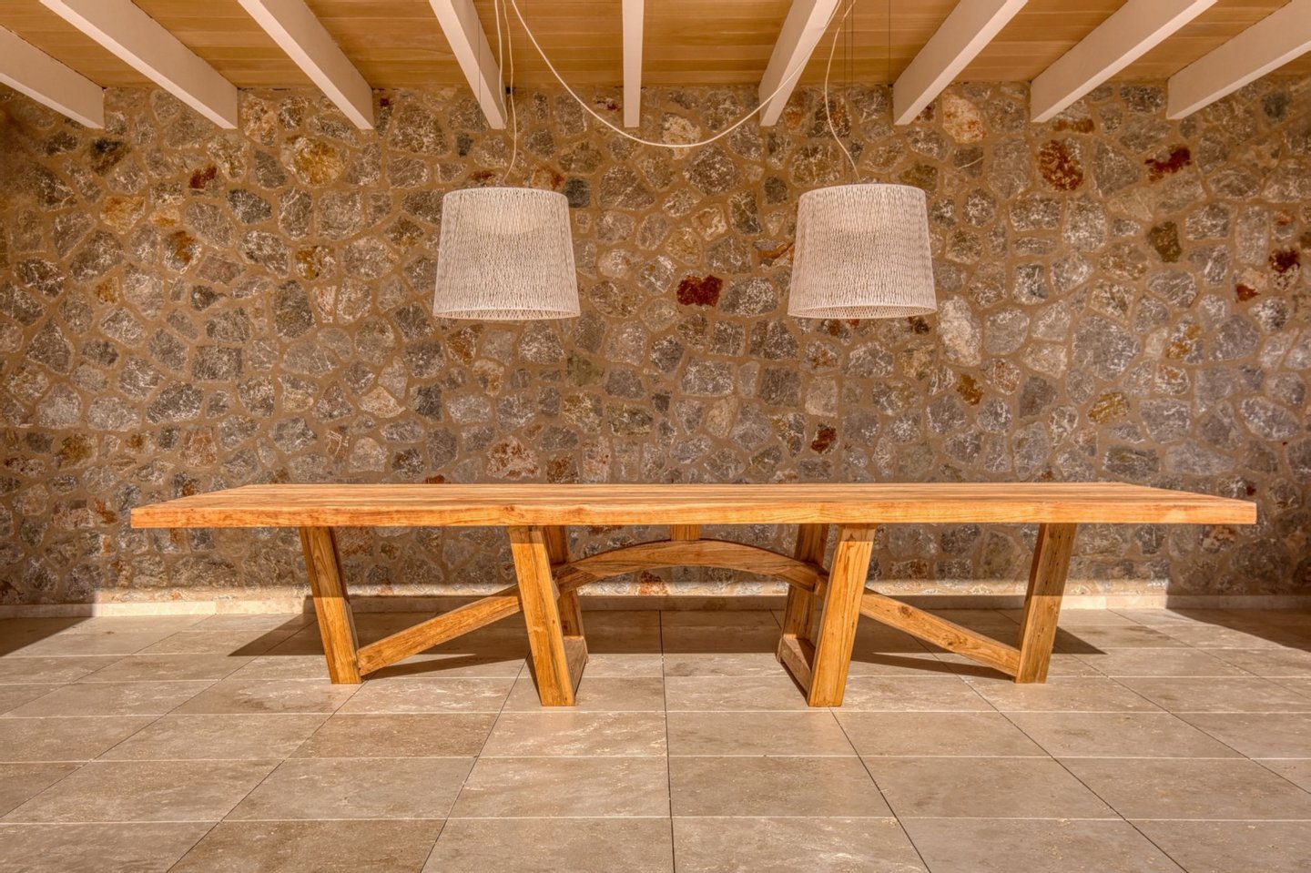 Die Stein- und Holzarbeiten in diesem Haus sind einzigartig und stilvoll. Die gelungene Kombination von Modernität und mallorquinischer Tradition schafft eine idyllische Atmosphäre. Der unverbaubare Blick und die große Garage für mindestens zwei Autos runden das Gesamtpaket ab.