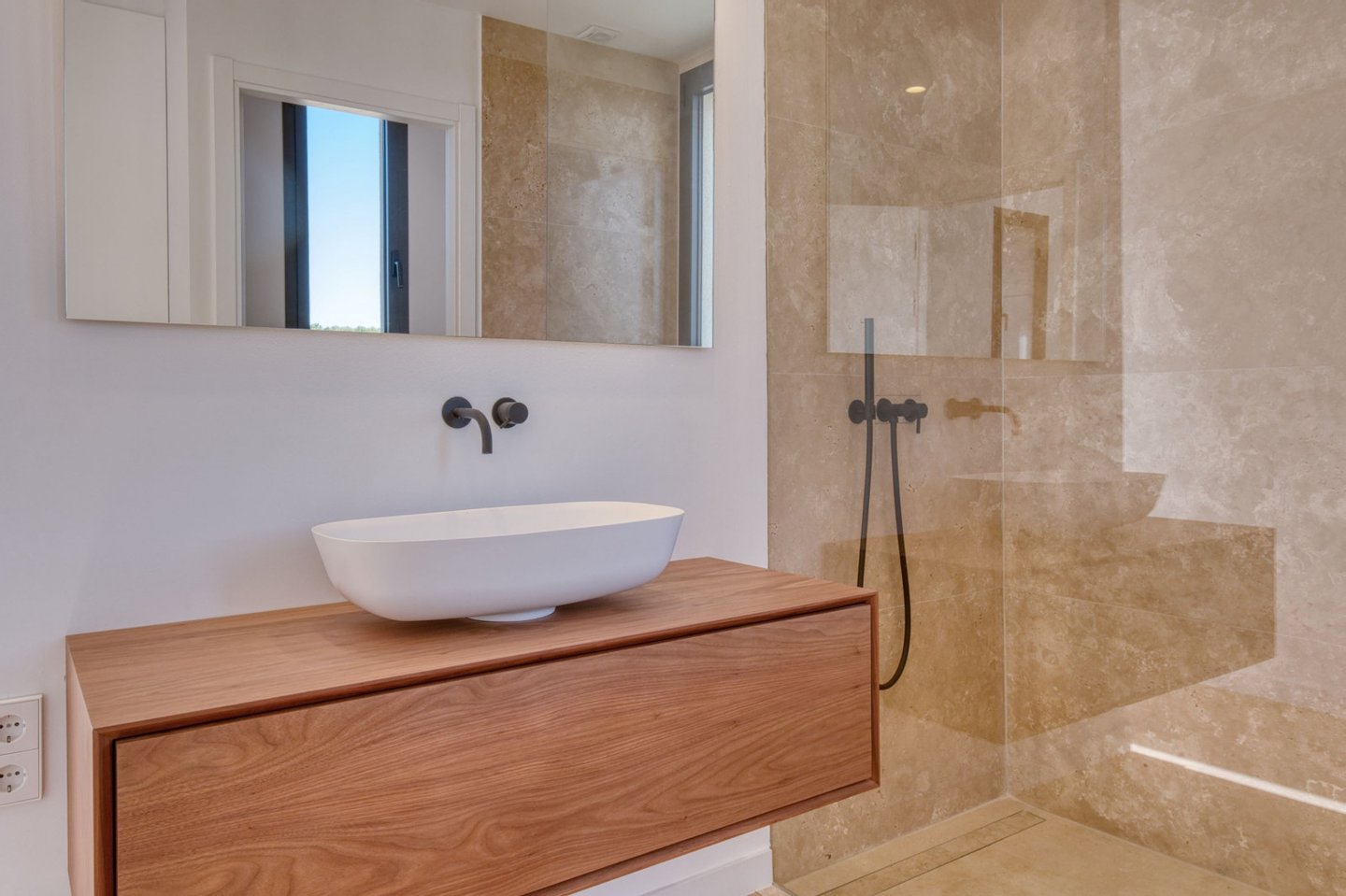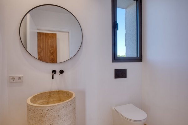 Willkommen in dieser majestätischen neu erbauten Luxusvilla mit Panoramablick auf die atemberaubende und moderne Finca am Ortsrand von Maria de la Salut. Dieses mallorquinische Haus wurde entworfen, um alle Arten von Komfort zu bieten. Bei Betreten des Hauses werden Sie von einer geräumigen Halle empfangen, die zum stilvollen Wohn-Esszimmer führt. Von hier aus haben Sie Zugang zur Terrasse, einem perfekten Ort, um die malerische Landschaft zu genießen. Die Küche ist voll ausgestattet und verfügt über eine angrenzende Waschküche. Im Erdgeschoss finden Sie außerdem ein Gäste-WC.