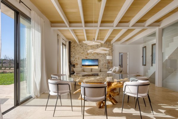 Das Haus besticht durch eine Natursteinfassade und ist mit modernen Annehmlichkeiten wie einer Wärmepumpe und einem Domotik-System ausgestattet. Ein gemütlicher Kamin sorgt für wohlige Wärme an kühlen Abenden. Zusätzlich verfügt die Villa über einen eigenen Brunnen, Stromanschluss und einen Salzwasser-Pool. Die Kanal-Klimaanlage und Fußbodenheizung sorgen für ganzjährigen Komfort.