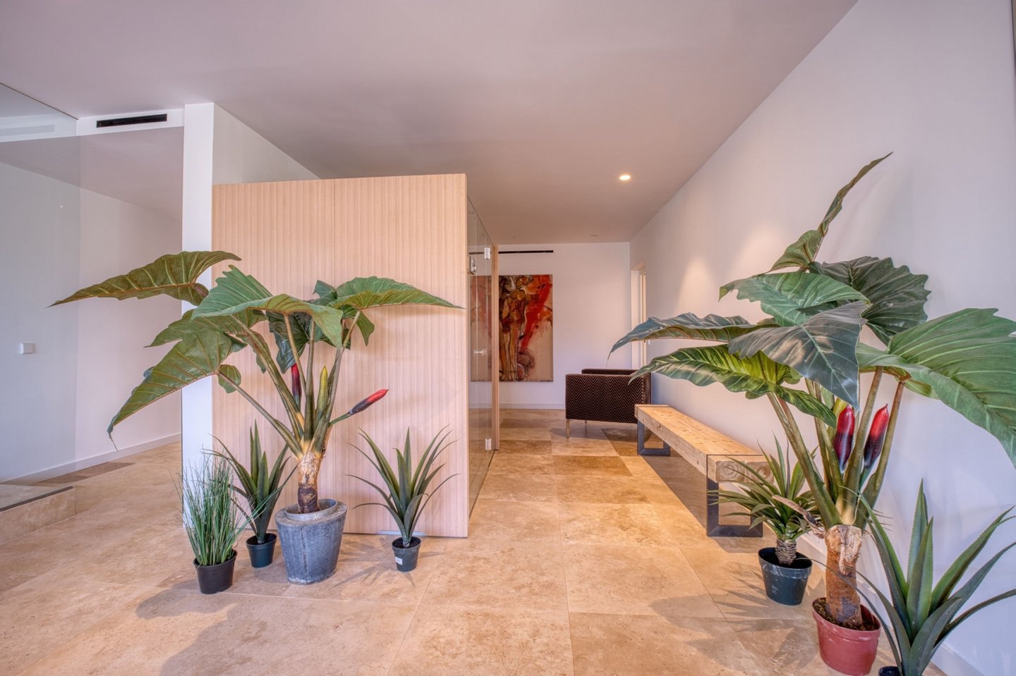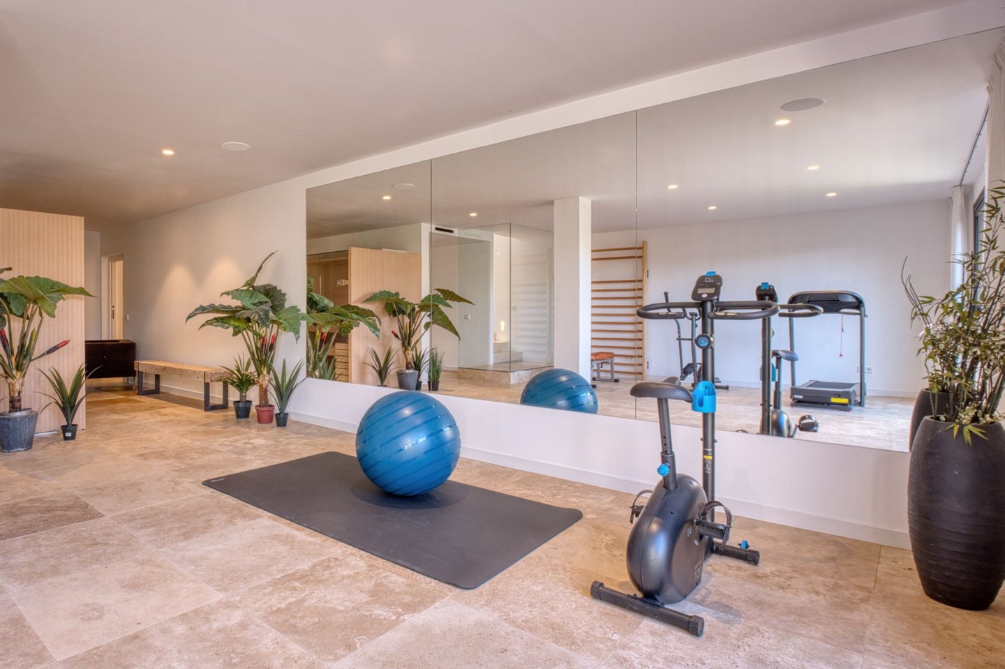 Neben all diesen Annehmlichkeiten bietet die Luxusvilla auch einen Fitnessraum, eine Sauna und eine Bodega für Weinliebhaber. Eine wunderschöne Gästewohnung mit separatem Schlafzimmer, Wohnzimmer, Bad und Küche bietet zusätzlichen Platz für Gäste.