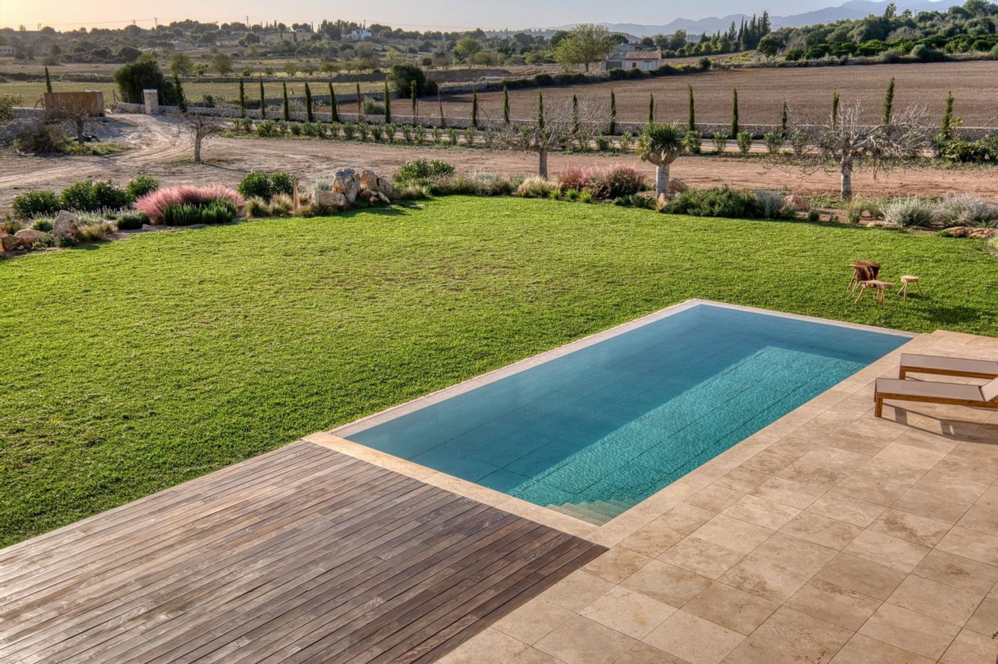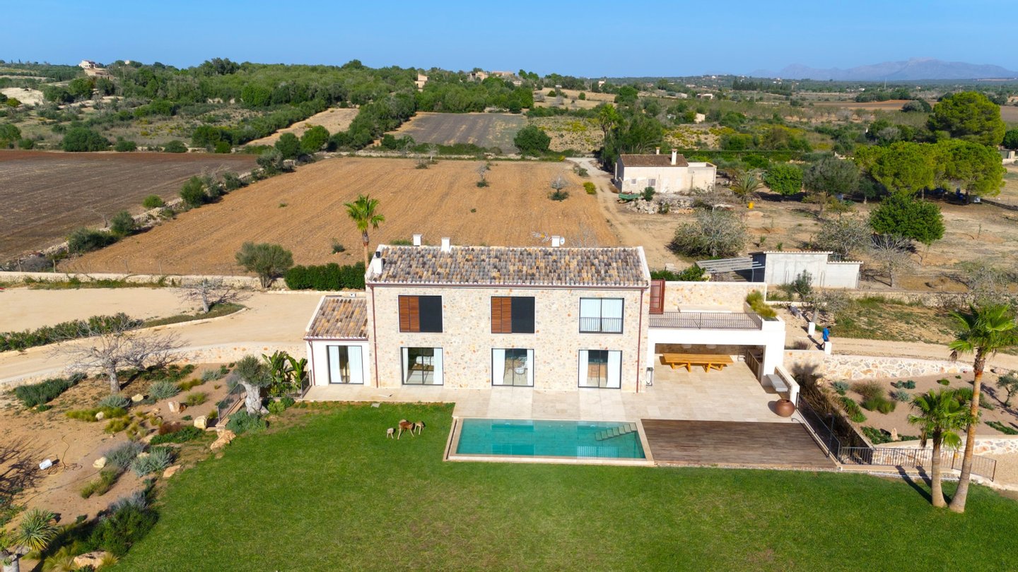 Willkommen in dieser majestätischen neu erbauten Luxusvilla mit Panoramablick auf die atemberaubende und moderne Finca am Ortsrand von Maria de la Salut. Dieses mallorquinische Haus wurde entworfen, um alle Arten von Komfort zu bieten. Bei Betreten