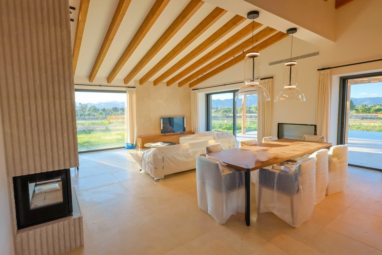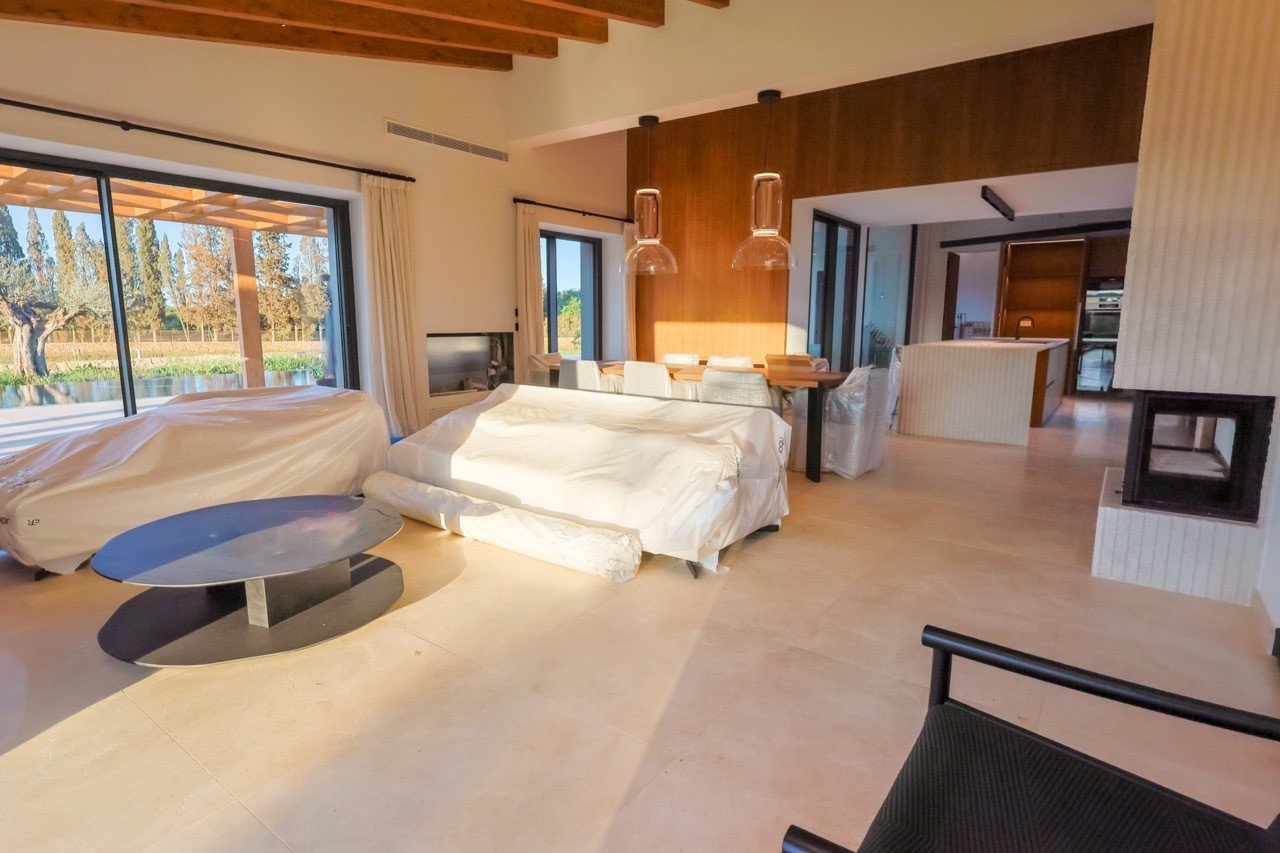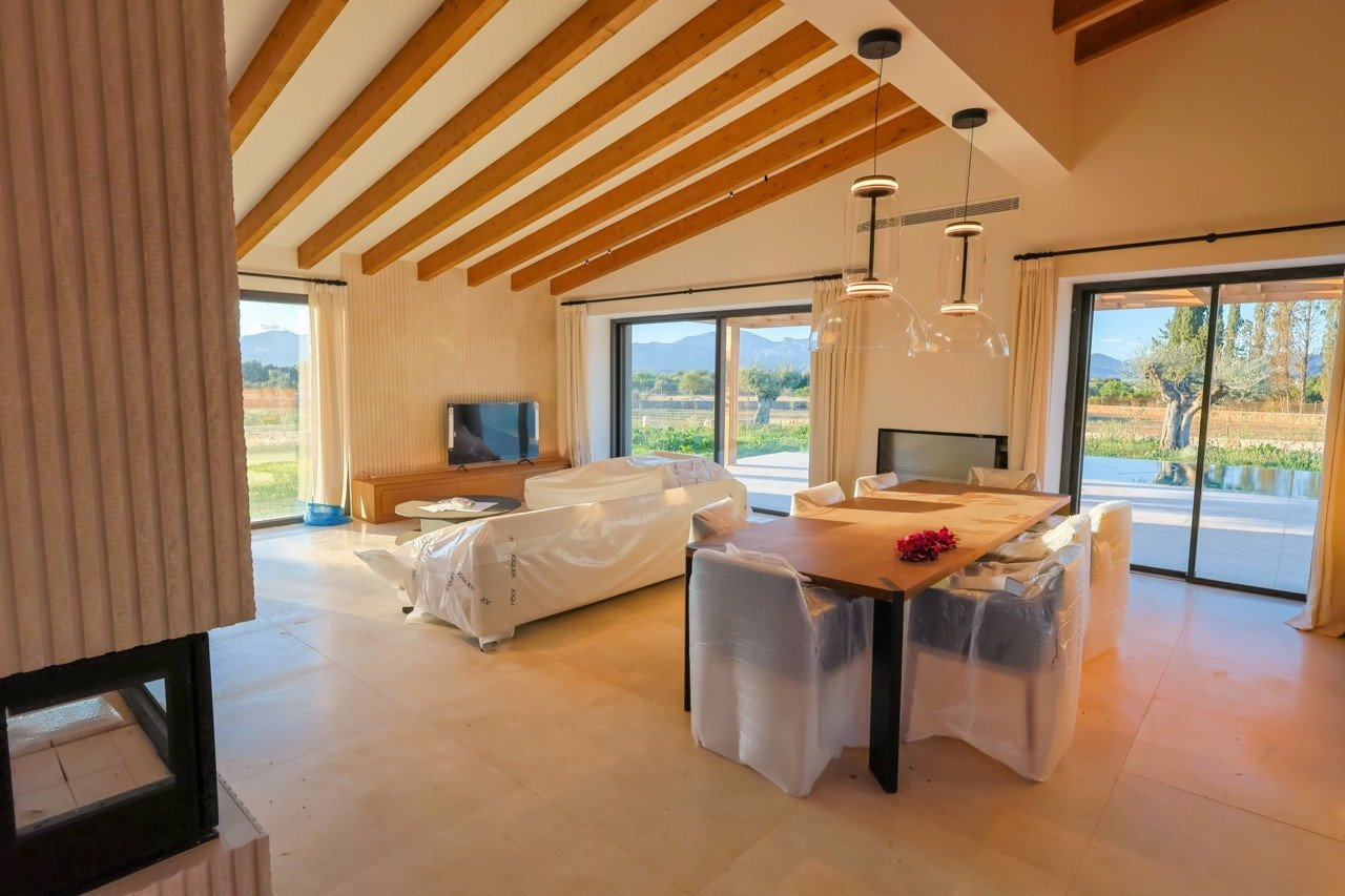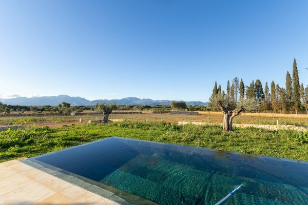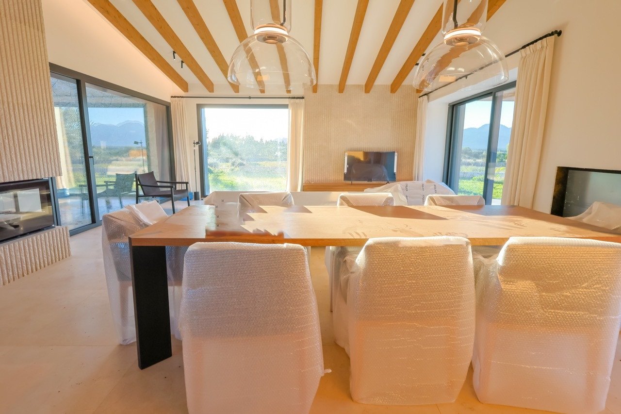 Willkommen in Ihrer exklusiven Luxus-Finca mit Panoramablick. Dieses neu erbaute Landhaus auf einem großzügigen Grundstück von 21.000 m² bietet Ihnen höchsten Komfort und Luxus. Die nach Westen ausgerichtete Villa besticht durch ihre voll möblierte und sofort bezugsfertige Ausstattung. Mit insgesamt 4 Schlafzimmern und 5 Bädern lässt dieses Anwesen keine Wünsche offen.Das lichtdurchflutete Wohnzimmer, das nahtlos in die hochwertige, voll ausgestattete Küche übergeht, lädt zum Verweilen ein. Die vier eleganten Bäder sowie ein praktischer Hauswirtschaftsraum runden das Angebot ab.Genießen Sie die warmen Sonnenstrahlen auf der großen Sonnenterrasse oder erfrischen Sie sich im 10-Meter-Salzwasserpool. Die exklusiven Steinfliesen aus Bali verleihen dem Außenbereich einen besonderen Charme. Der ungestörte Blick auf die umliegenden Berge und die absolute Ruhe machen dieses Anwesen zu einem wahren Traum.Die hochwertige Bauausführung mit bodentiefen deutschen Markenfenstern, einem Marmorkamin, edlen Holzverkleidungen und exquisiten Fliesen aus Ägypten unterstreichen den luxuriösen Charakter dieser Villa. Ein zusätzliches Highlight ist das separate Gästeapartment mit eigenem Doppelzimmer, Küche und Badezimmer - perfekt für Gäste, die ihre Privatsphäre genießen möchten.Diese exklusive Immobilie ist mit Solarpaneelen ausgestattet und verfügt über einen Stromanschluss. Das Grundstück ist komplett mit einer Steinmauer und zusätzlichem Zaun umgeben und bietet eine Vielzahl von Bäumen, darunter Olivenbäume. Nur 1 km von Muro entfernt, erleben Sie hier Ruhe und Luxus in perfekter Harmonie.