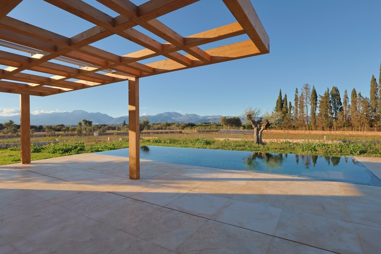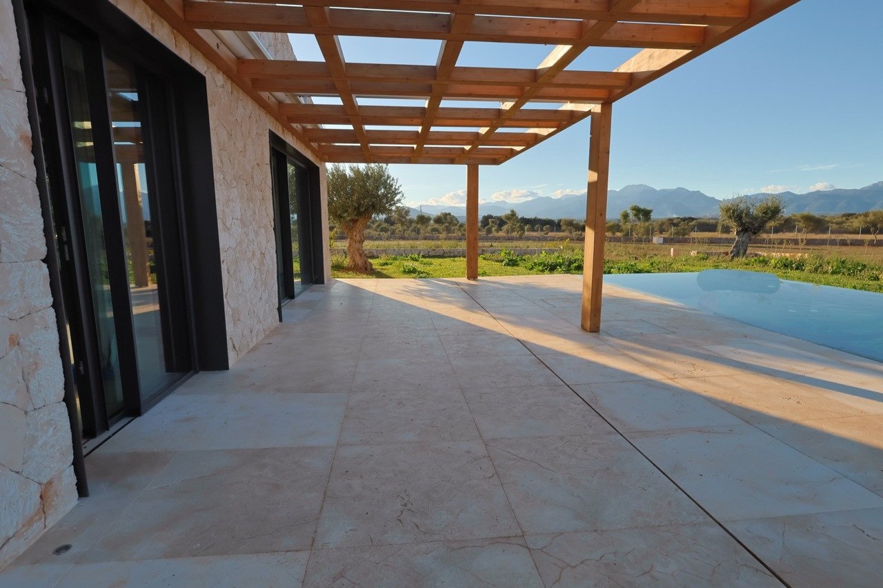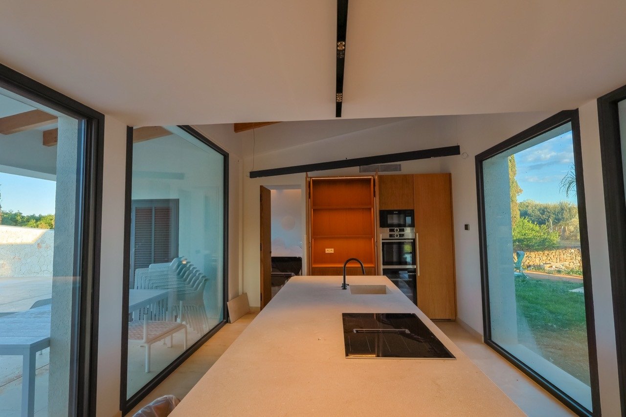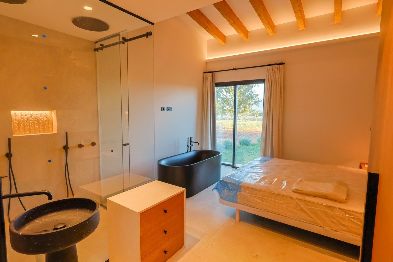 Willkommen in Ihrer exklusiven Luxus-Finca mit Panoramablick. Dieses neu erbaute Landhaus auf einem großzügigen Grundstück von 21.000 m² bietet Ihnen höchsten Komfort und Luxus. Die nach Westen ausgerichtete Villa besticht durch ihre voll möblierte und sofort bezugsfertige Ausstattung. Mit insgesamt 4 Schlafzimmern und 5 Bädern lässt dieses Anwesen keine Wünsche offen.Das lichtdurchflutete Wohnzimmer, das nahtlos in die hochwertige, voll ausgestattete Küche übergeht, lädt zum Verweilen ein. Die vier eleganten Bäder sowie ein praktischer Hauswirtschaftsraum runden das Angebot ab.Genießen Sie die warmen Sonnenstrahlen auf der großen Sonnenterrasse oder erfrischen Sie sich im 10-Meter-Salzwasserpool. Die exklusiven Steinfliesen aus Bali verleihen dem Außenbereich einen besonderen Charme. Der ungestörte Blick auf die umliegenden Berge und die absolute Ruhe machen dieses Anwesen zu einem wahren Traum.Die hochwertige Bauausführung mit bodentiefen deutschen Markenfenstern, einem Marmorkamin, edlen Holzverkleidungen und exquisiten Fliesen aus Ägypten unterstreichen den luxuriösen Charakter dieser Villa. Ein zusätzliches Highlight ist das separate Gästeapartment mit eigenem Doppelzimmer, Küche und Badezimmer - perfekt für Gäste, die ihre Privatsphäre genießen möchten.Diese exklusive Immobilie ist mit Solarpaneelen ausgestattet und verfügt über einen Stromanschluss. Das Grundstück ist komplett mit einer Steinmauer und zusätzlichem Zaun umgeben und bietet eine Vielzahl von Bäumen, darunter Olivenbäume. Nur 1 km von Muro entfernt, erleben Sie hier Ruhe und Luxus in perfekter Harmonie.