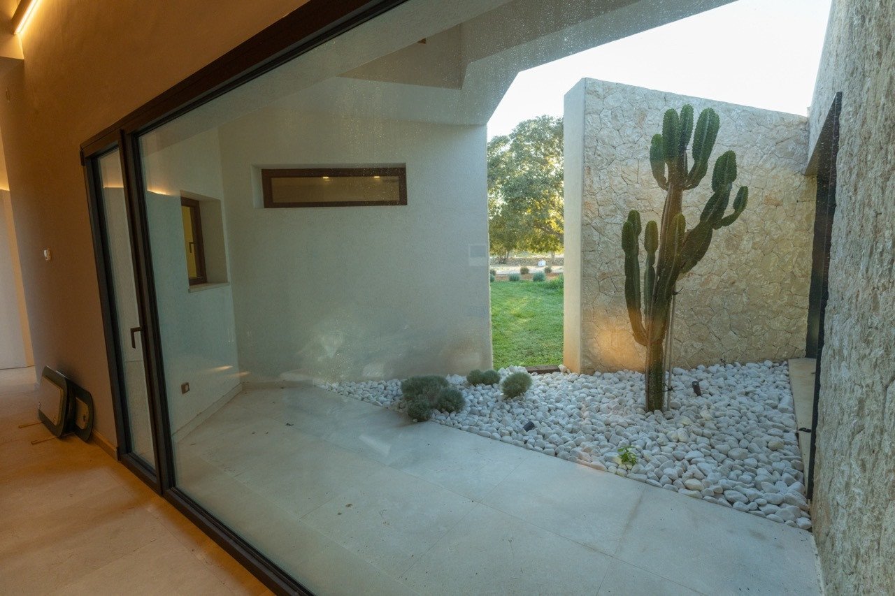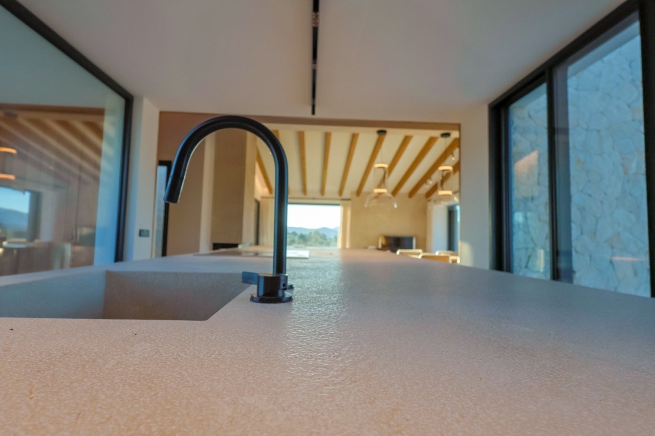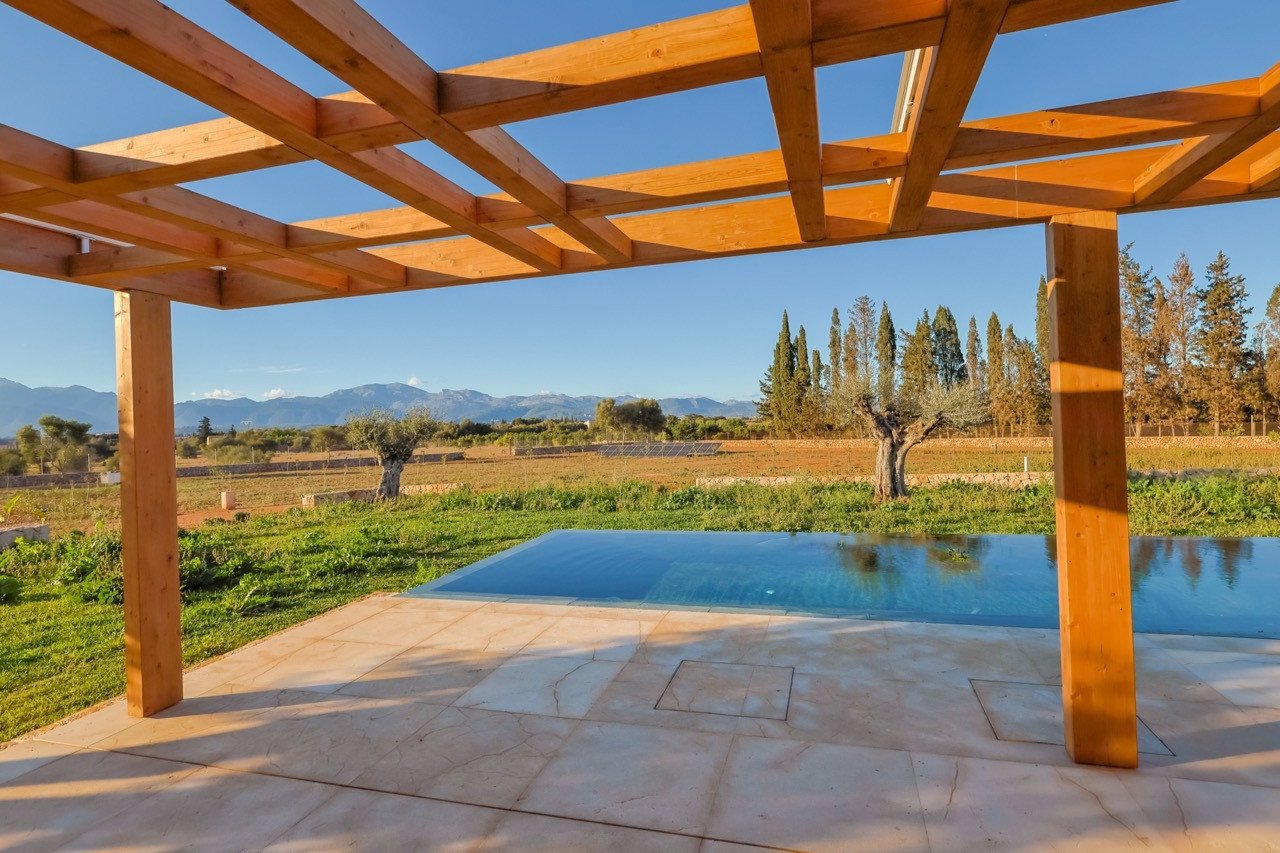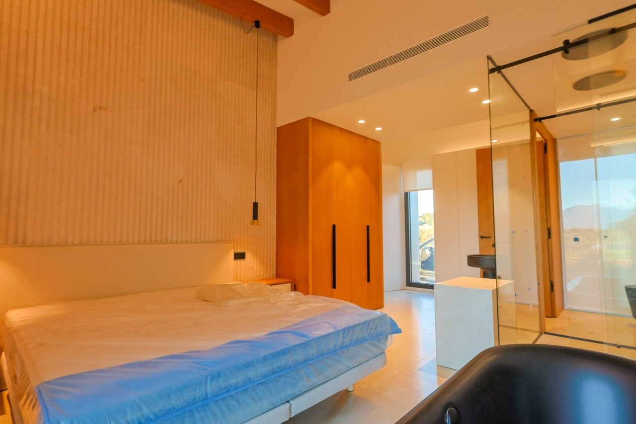 Willkommen in Ihrer exklusiven Luxus-Finca mit Panoramablick. Dieses neu erbaute Landhaus auf einem großzügigen Grundstück von 21.000 m² bietet Ihnen höchsten Komfort und Luxus. Die nach Westen ausgerichtete Villa besticht durch ihre voll möblierte und sofort bezugsfertige Ausstattung. Mit insgesamt 4 Schlafzimmern und 5 Bädern lässt dieses Anwesen keine Wünsche offen.Das lichtdurchflutete Wohnzimmer, das nahtlos in die hochwertige, voll ausgestattete Küche übergeht, lädt zum Verweilen ein. Die vier eleganten Bäder sowie ein praktischer Hauswirtschaftsraum runden das Angebot ab.Genießen Sie die warmen Sonnenstrahlen auf der großen Sonnenterrasse oder erfrischen Sie sich im 10-Meter-Salzwasserpool. Die exklusiven Steinfliesen aus Bali verleihen dem Außenbereich einen besonderen Charme. Der ungestörte Blick auf die umliegenden Berge und die absolute Ruhe machen dieses Anwesen zu einem wahren Traum.Die hochwertige Bauausführung mit bodentiefen deutschen Markenfenstern, einem Marmorkamin, edlen Holzverkleidungen und exquisiten Fliesen aus Ägypten unterstreichen den luxuriösen Charakter dieser Villa. Ein zusätzliches Highlight ist das separate Gästeapartment mit eigenem Doppelzimmer, Küche und Badezimmer - perfekt für Gäste, die ihre Privatsphäre genießen möchten.Diese exklusive Immobilie ist mit Solarpaneelen ausgestattet und verfügt über einen Stromanschluss. Das Grundstück ist komplett mit einer Steinmauer und zusätzlichem Zaun umgeben und bietet eine Vielzahl von Bäumen, darunter Olivenbäume. Nur 1 km von Muro entfernt, erleben Sie hier Ruhe und Luxus in perfekter Harmonie.