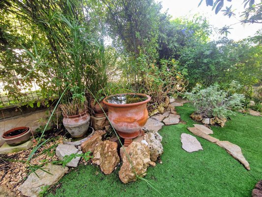 Zusätzliche Highlights: Eine moderne Einbauküche, zwei einladende Terrassen, ein idyllischer Teich, Elektro-Zentralheizung sowie praktische Einbauschränke in beiden Schlafzimmern runden das Angebot ab.