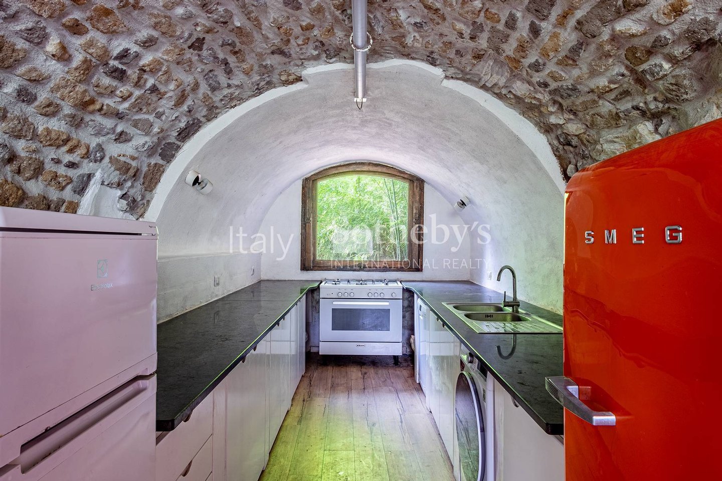 Der charmante Hauptteil, der älter ist, erstreckt sich über zwei Ebenen. Im Eingangsbereich befinden sich ein großzügiges Wohnzimmer, eine Küche, ein Esszimmer und eine kleine Sitzecke mit Kamin. In der oberen Etage wird man von einem großen zentralen Salon mit Kamin empfangen, zwei geräumigen Doppelzimmern mit eigenem Bad sowie einem dritten Zimmer im Mezzanin. Außen umfasst das Anwesen ein Gästehaus mit Wohnzimmer und Bad sowie einen Schlafbereich im Mezzanin. Ein angenehmer Weg führt zum zweiten Landhaus, das vier geräumige Schlafzimmer beherbergt, von denen jedes über ein eigenes Bad und einen Kamin verfügt, darunter zwei Suiten, die aus einem Salon, einem Flur, einem Bad und einem komfortablen Mezzanin für den Schlafbereich bestehen.