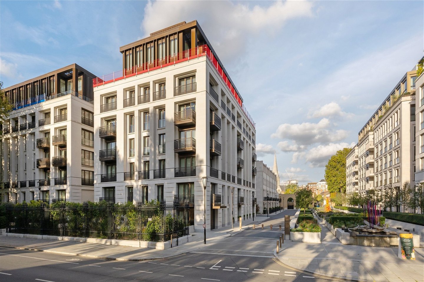 Das Hotel befindet sich in einer der schönsten Wohnanlagen Londons an einer der renommiertesten Adressen Londons. Diese atemberaubende Wohnung im vierten Stock befindet sich in der exklusiven Chelsea Barracks in Belgravia und bietet über 2.600 m² luxuriöse Wohnfläche. Mit drei Schlafzimmern mit eigenem Bad, einem geräumigen Empfangsraum und drei Balkonen verkörpert das Anwesen moderne Eleganz. Der Mulberry Square ist nur einer von sieben Gartenplätzen in den Chelsea Barracks. Die Bewohner profitieren vom Zugang zu erstklassigen Annehmlichkeiten wie einem 24-Stunden-Concierge, einem Parkservice, einem Tennisplatz und privaten Gärten. Die Bewohner erhalten Zugang zum The Garrison Club, der palastartige Spa-Einrichtungen, einen hochmodernen Fitnessraum, einen 25-Meter-Pool, einen Kinoraum, eine Business-Suite und luxuriöse Lounges bietet. Zur Wohnung gehört ein sicherer Parkplatz.