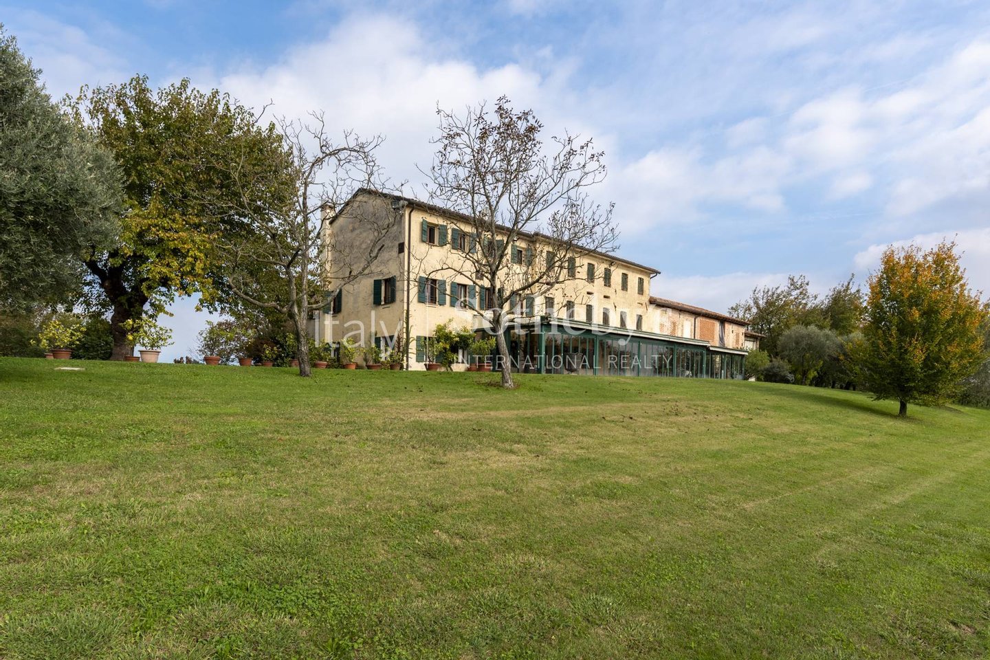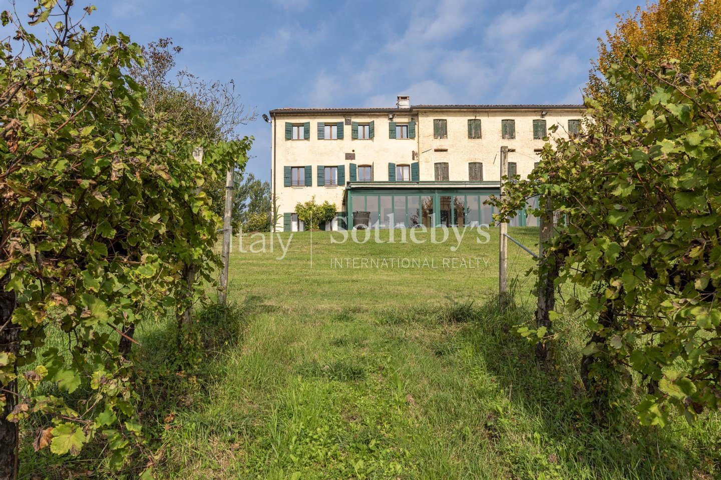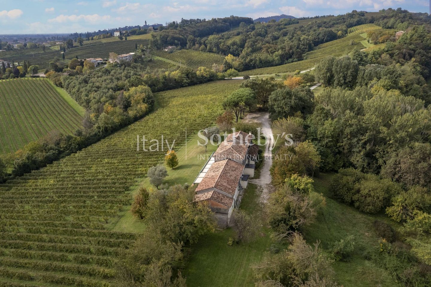 Dieses spektakuläre Anwesen, auf dem Gipfel eines Hügels in einem von der UNESCO geschützten Gebiet für seine landschaftliche Schönheit, befindet sich in einer einzigartigen Region, geschmückt mit langen Weinrebenreihen zwischen Schlössern und harmonischen Ausblicken. Die mehr als 6 Hektar dieser Immobilie, von denen die Hälfte mit Prosecco DOCG-Weinbergen bepflanzt sind, wurden durch die Arbeit und Kultur der Winzer rund um dieses typische Landhaus gestaltet, was ein bezauberndes Panorama schafft. Die Liebe zur Tradition hat den Stil dieses Anwesens bewahrt, das seit Beginn des 20. Jahrhunderts die Gegend dominiert und im Laufe der Jahre ein erholsames Privatdomizil im Grünen sowie ein Treffpunkt für gesellige Zusammenkünfte wurde, bei denen man die außergewöhnliche lokale Küche und gute Weine genießen kann, während man die magische Umgebung bewundert. Die verschiedenen Restaurierungen haben die markanten Merkmale wie die historischen Kamine, die originale Dachkonstruktion und das authentische Terrakotta-Parkettboden aufgewertet. Zu den Innenräumen gehören die Salons im Erdgeschoss mit den Servicebereichen, die Unterkünfte in den oberen Etagen und die großen Scheunen. Das Landhaus ist von einem bewaldeten Park umgeben und bietet einen 360-Grad-Blick mit einer außergewöhnlichen Sonnenexposition. Die Lage ist in einer ruhigen Gegend, jedoch gut an das Straßennetz angebunden, mit direkter Verbindung zu Venedig und den Dolomiten.