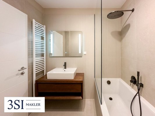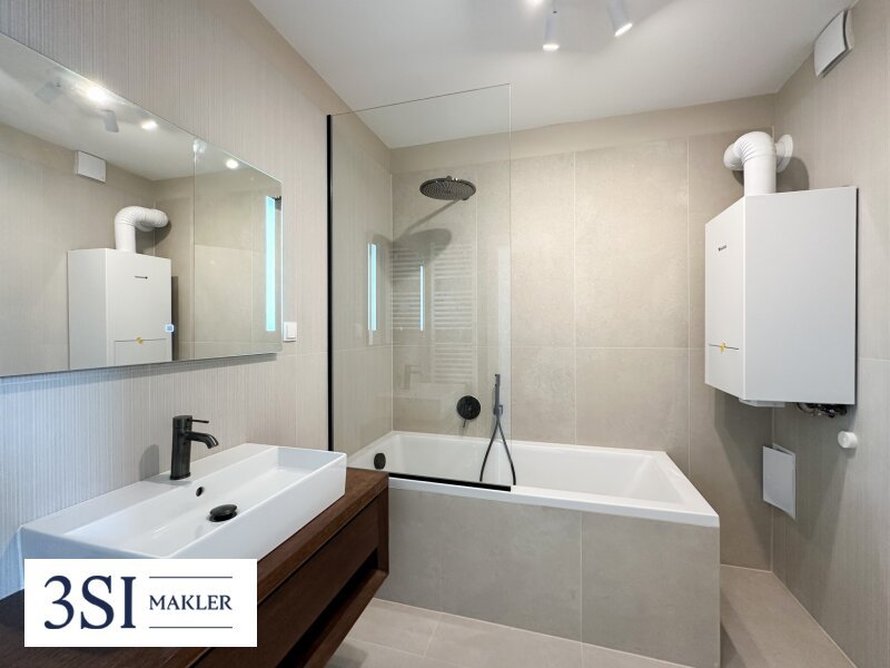 - Badezimmer mit Badewanne und Waschmaschinenanschluss