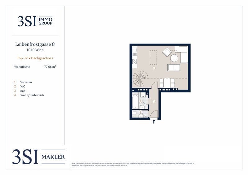 Der guten Ordnung halber halten wir fest, dass, sofern im Angebot nicht anders vermerkt, bei erfolgreichem Abschlussfall eine Provision anfällt, die den in der Immobilienmaklerverordnung BGBI. 262 und 297/1996 festgelegten Sätzen entspricht – das sind 3 % des Kaufpreises zzgl. 20 % USt. Diese Provisionspflicht besteht auch dann, wenn Sie die Ihnen überlassenen Informationen an Dritte weitergeben.