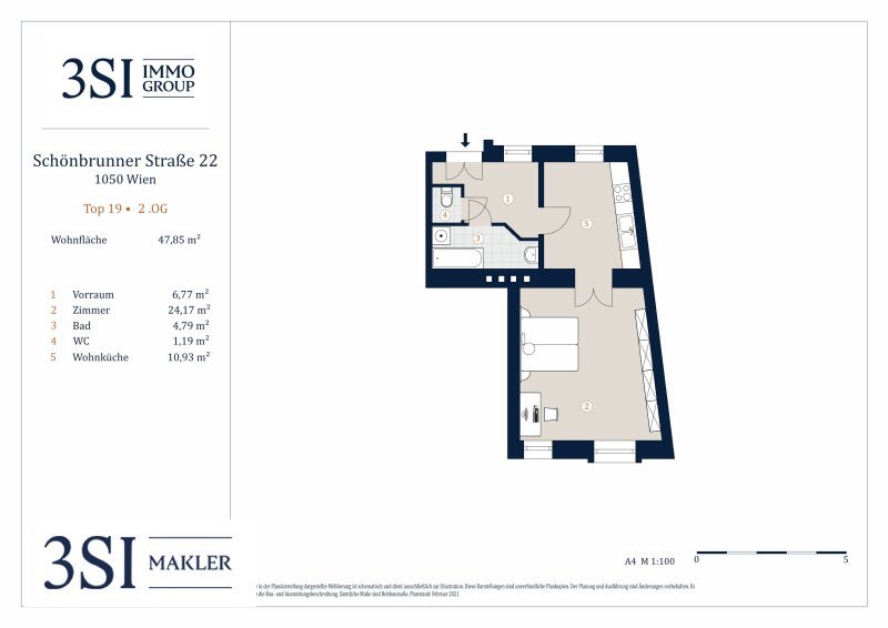 Die Wohnung ist Richtung Süd-Ost zur Schönbrunner Straße ausgerichtet.