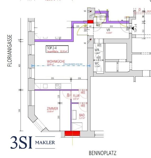 Zusätzlich kann auch noch die zweite angrenzende Einheit (Top2-4A) mit insgesamt 106m², als Paket - etwas günstiger als Einzel -erworben werden.