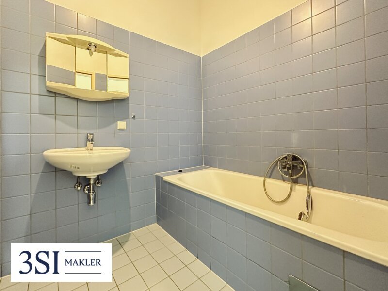 Die Küche dieser Wohnung ist vollausgestattet mit allen Geräten. Im verfliesten Badezimmer gibt es eine Badewanne, ein Handwaschbecken, sowie einen Waschmaschinenanschluss.