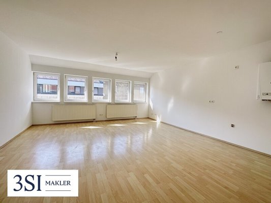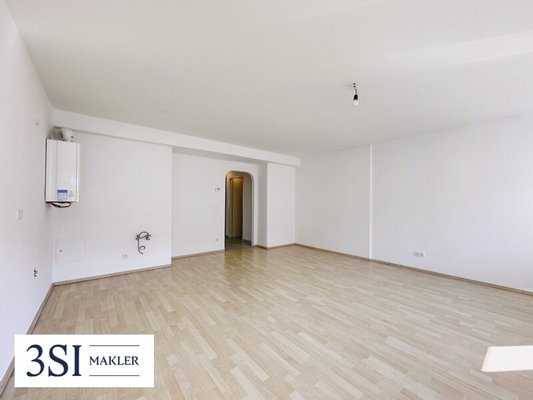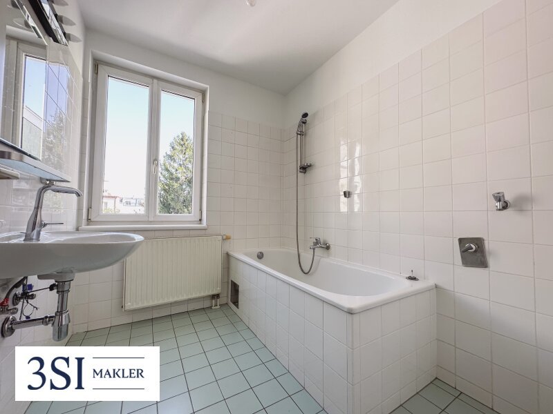 Hofseitig, nach Osten ausgerichtet, befindet sich das großzügige Badezimmer, welches über eine Badewanne, ein Handwaschbecken, sowie einen Waschmaschinenanschluss verfügt. Ebenfalls in den komplett ruhigen Innenhof ausgerichtet, befindet sich das Schlafzimmer. Darüber hinaus gelangt man vom Vorzimmer in das getrennt begehbare WC, sowie den hellen Wohnraum. Dieser besticht vor allem durch seine großzügige Fensterfront, dank welcher der Raum zu allen Tageszeiten in natürlichem Licht erstrahlt. Hier haben Sie die Möglichkeit eine Küche nach Ihren persönlichen Vorstellungen zu gestalten.