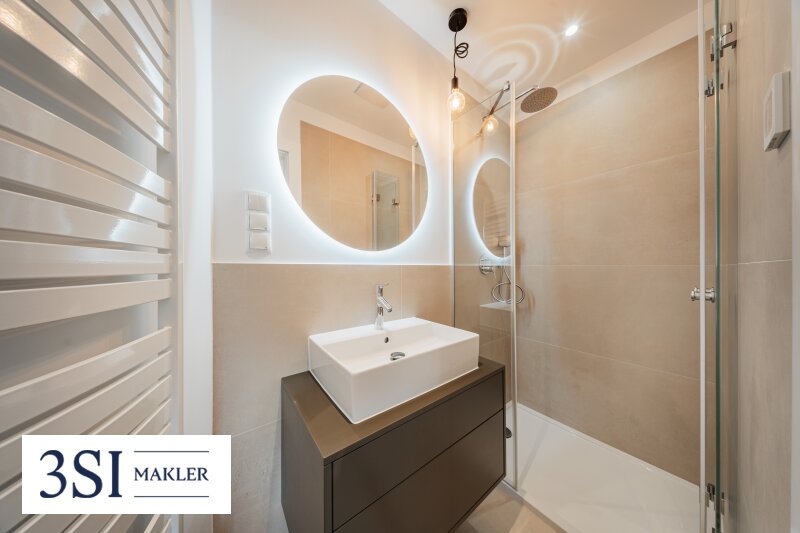Diese moderne 2-Zimmer Wohnung überzeugt mit ihrem durchdachten Grundriss zur Gänze. Die Wohnräume sind Richtung Nord-Westen ausgerichtet. Vom Vorraum aus gelangen Sie in das separate WC, sowie die großzügige Wohnküche. Daran angrenzend befindet sich das gemütliche Schlafzimmer mit eigenem Bad En-Suite. Die Nassräume sind mit hochwertigem Feinsteinzeug und Markenarmaturen ausgestattet. Das Badezimmer wurde mit einer Walk-In Dusche, sowie einem Handwaschbecken geplant. Der Waschmaschinenanschluss befindet sich in der Küchenzeile.