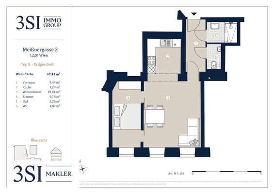 Der guten Ordnung halber halten wir fest, dass, sofern im Angebot nicht anders vermerkt, bei erfolgreichem Abschlussfall eine Provision anfällt, die den in der Immobilienmaklerverordnung BGBI. 262 und 297/1996 festgelegten Sätzen entspricht – das sind 3 % des Kaufpreises zzgl. 20 % USt. Diese Provisionspflicht besteht auch dann, wenn Sie die Ihnen überlassenen Informationen an Dritte weitergeben. Letztlich weisen wir darauf hin, dass wir als Doppelmakler tätig sind und ein familiäres/wirtschaftliches Naheverhältnis zwischen der 3SI Makler GmbH und der Verkäuferin besteht.