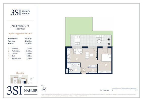 Der guten Ordnung halber halten wir fest, dass, sofern im Angebot nicht anders vermerkt, bei erfolgreichem Abschlussfall eine Provision anfällt, die den in der Immobilienmaklerverordnung BGBI. 262 und 297/1996 festgelegten Sätzen entspricht – das sind 3 % des Kaufpreises zzgl. 20 % USt. Diese Provisionspflicht besteht auch dann, wenn Sie die Ihnen überlassenen Informationen an Dritte weitergeben. Letztlich weisen wir darauf hin, dass wir als Doppelmakler tätig sind und ein familiäres/wirtschaftliches Naheverhältnis zwischen der 3SI Makler GmbH und der Verkäuferin besteht.