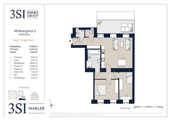 Der guten Ordnung halber halten wir fest, dass, sofern im Angebot nicht anders vermerkt, bei erfolgreichem Abschlussfall eine Provision anfällt, die den in der Immobilienmaklerverordnung BGBI. 262 und 297/1996 festgelegten Sätzen entspricht – das sind 3 % des Kaufpreises zzgl. 20 % USt. Diese Provisionspflicht besteht auch dann, wenn Sie die Ihnen überlassenen Informationen an Dritte weitergeben. Letztlich weisen wir darauf hin, dass wir als Doppelmakler tätig sind und ein familiäres/wirtschaftliches Naheverhältnis zwischen der 3SI Makler GmbH und der Verkäuferin besteht.