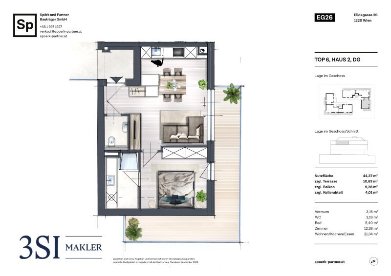 Der angegebene Verkaufspreis € 391.000,- ist der netto Vorsorgepreis. Optional ist ein Garagenplatz um € 32.000,- erwerbbar.