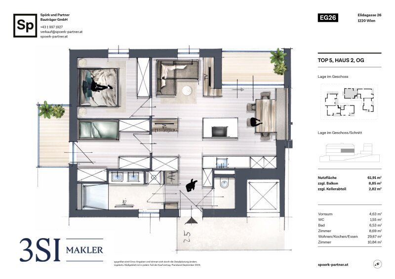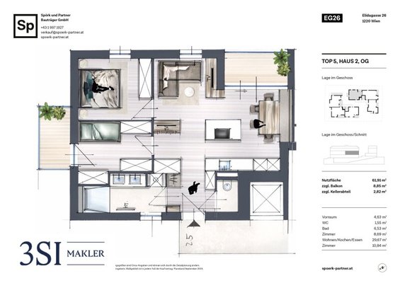 Der angegebene Verkaufspreis € 452.000,- ist der netto Vorsorgepreis. Optional ist ein Garagenplatz um € 32.000,- erwerbbar.