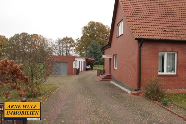 Auf dem Grundstück steht weiterhin eine massive Garage mit Werkstatt und ein Doppelcarport.