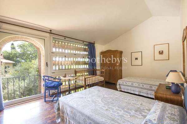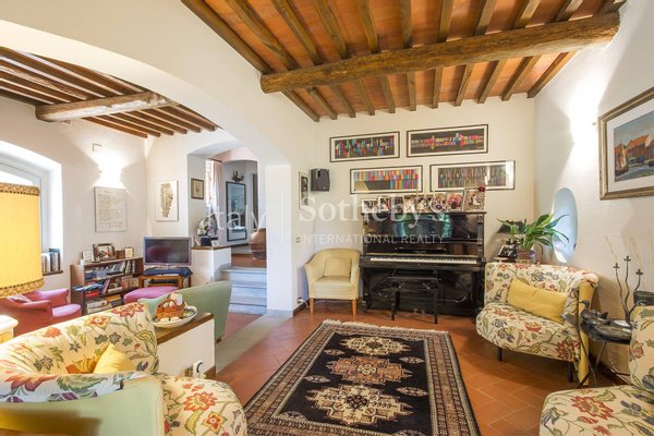 Die angrenzende Scheune besteht aus einem großen Wohnzimmer im Erdgeschoss und zwei großen Schlafzimmern mit zwei Bädern im ersten Stock. Dieses schöne Anwesen umfasst auch einen weiteren Anbau als Garage und Keller benutzt, einen unregelmäßig geformten Pool, inmitten des Olivenhains, und einen Tennisplatz. Die landwirtschaftliche Nutzfläche besteht hauptsächlich aus Olivenhainen und Weinbergen, die beide in Produktion sind. Die private, aber nicht isolierte Lage macht dieses Objekt einzigartig in seiner Art. Der Golfplatz Montecatini Terme ist zu Fuß erreichbar, während das Bergdorf Montevettolini weniger als zwei Kilometer entfernt ist.