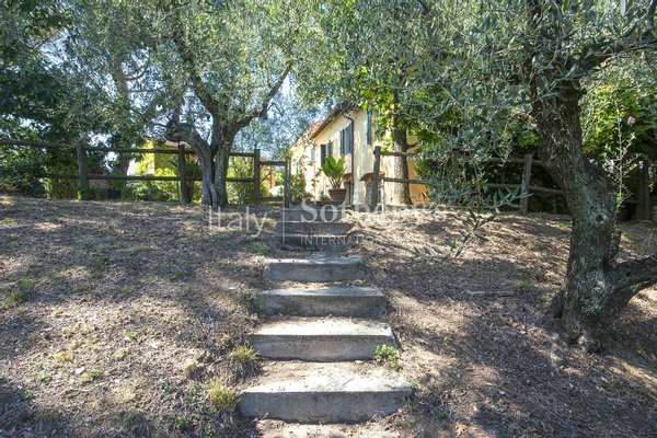 Das Bauernhaus liegt auf einem schönen Hügel, nur wenige Schritte vom berühmten Golfplatz von Montecatini Terme und dem malerischen Dorf Montevettolini entfernt. Es ist ein wunderschönes und authentisches toskanisches Bauernhaus mit einer renovierten Scheune, von etwa 4 Hektar Olivenhain und Weinberg umgeben.