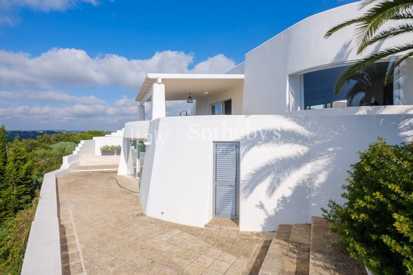 Die großzügigen, elegant eingerichteten Innenräume öffnen sich durch große Glasfronten zu Terrassen und zum Pool und bieten eine Aussicht, die sich mit dem natürlichen Licht verändert. Das Grundstück ist eingezäunt und von anderen Villen gut abgegrenzt, wodurch Privatsphäre und Ruhe gewährleistet sind. Ein Tor führt zu einer grünen Oase mit einem Weg, der zur Villa und zu den Parkplätzen führt.
