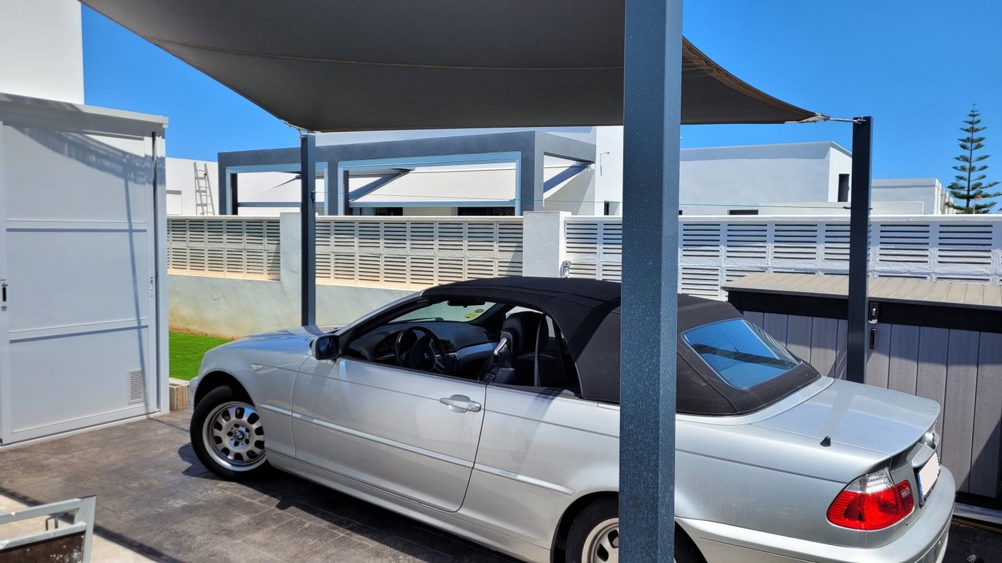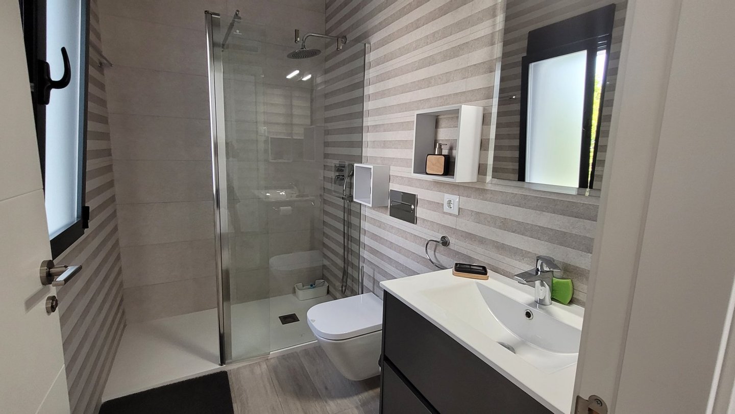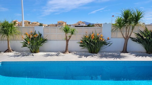 Im Außenbereich können Sie ein privates Schwimmbad von 8 x 4 Metern genießen, das mit einem automatischen pH-Kontrollsystem und Salzelektrolyse-Desinfektion, LED-Unterwasserbeleuchtung und einer Rolljalousie ausgestattet ist. Dank zweier elektrischer Wärmepumpen von 17 kW ist das Schwimmbad das ganze Jahr über nutzbar. Darüber hinaus gibt es eine Dusche, einen Jacuzzi, Terrassen mit automatischen Pergolen, Gärten, einen Abstellraum und Platz für die Parkmöglichkeiten.